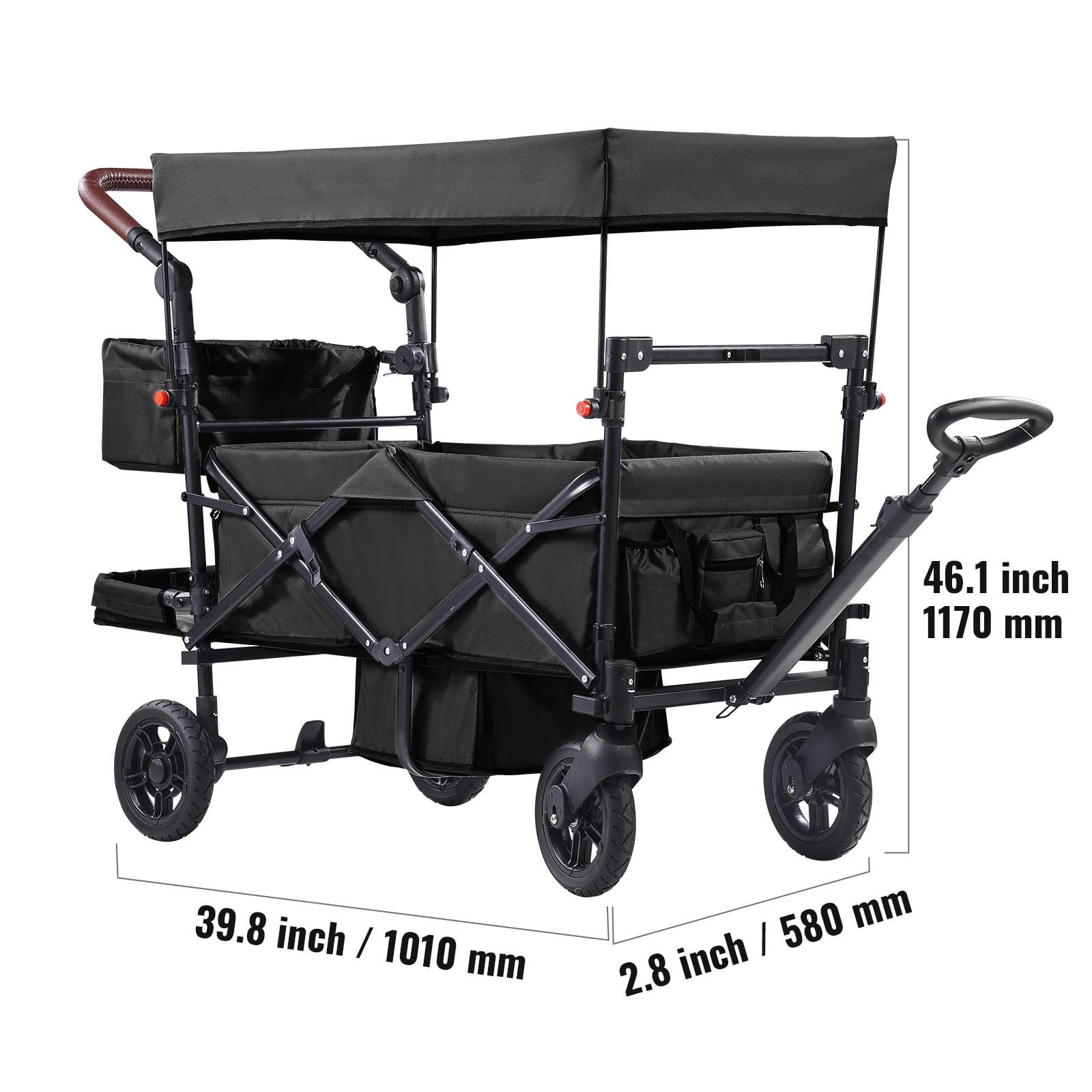 KFFKFF Wagon Stroller for 2 Kids, All-Terrain Stroller Wagon with Detachable Canopy, Adjustable Handlebar, Large Capacity Storage Bag, Black
