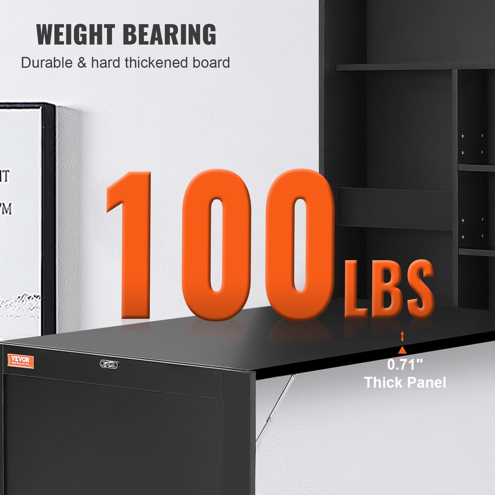 SKYSHALO Wall Mounted Convertible Desk with Blackboard and Storage Shelves, Black