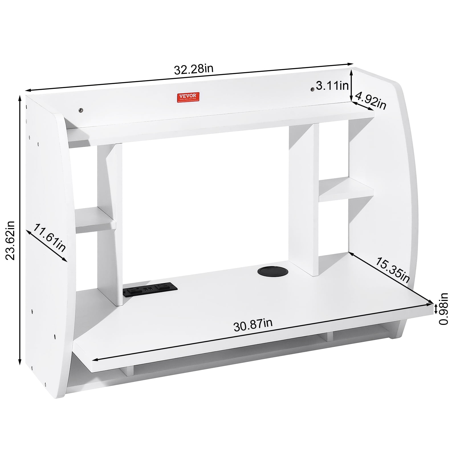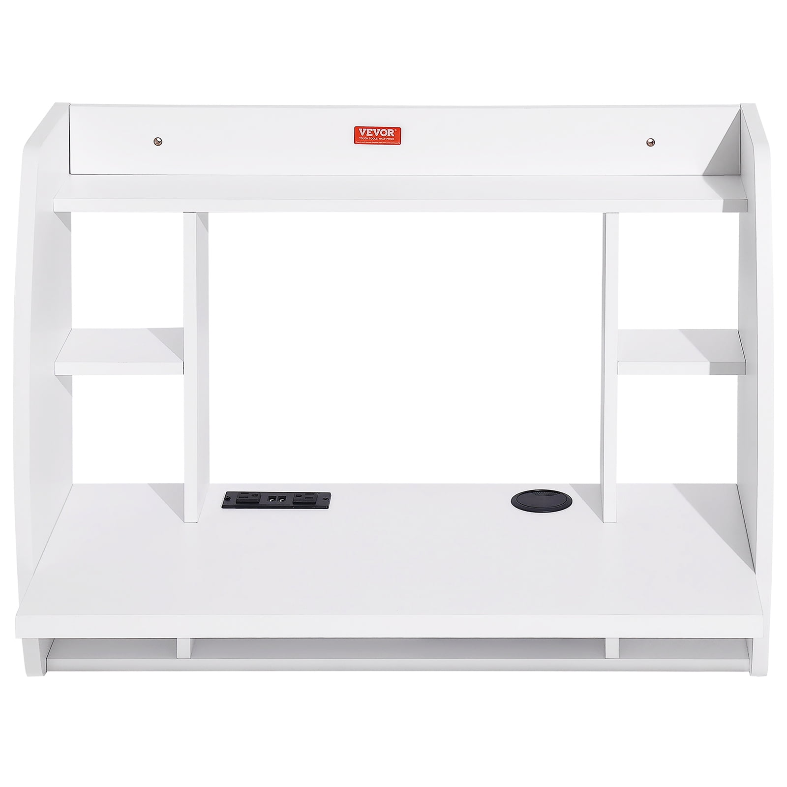 SKYSHALO Wall Mounted Floating Computer Desk with Power Socket and Storage Shelf, White