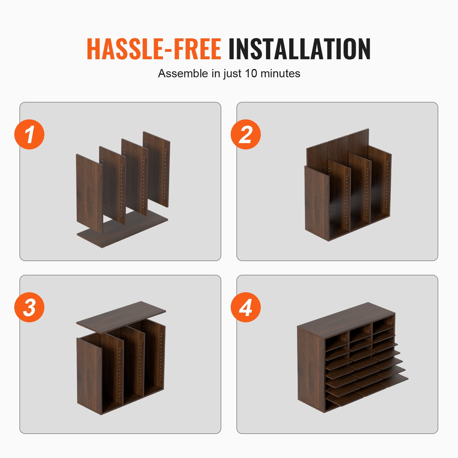 Maximize Your Space: Say goodbye to cluttered desktops with SKYSHALO 29”x12”x24.4” wood literature organizer. It has 24 compartments in total, arranged in 8 rows and 3 columns. You’ll have ample space to store and organize books, documents, magazines, papers, and other materials. Keep your workspace neat and tidy with ease. Sturdy Construction: Our wood file sorter is mainly crafted from P2 chipboard that is EPA-certified, you and your family can rest assured to use. Its surface is polished smoothly, making it waterproof, scratch-resistant, and easy to clean, perfect for busy workspaces. Flexible Storage: With compartment sizes of 11.1″x8.7″x2.2″, our wood file organizer can hold over 500 A4 paper sheets in each compartment. Plus, you can adjust or remove shelves to make space for taller items. Customize the layout of your storage cabinet to suits your specific needs. Assemble in No Time: Our literature organizer sorter is incredibly easy to install, thanks to its simple panel design. With the included assembly instructions, you’ll be guided through every step of the process, making it a breeze to complete the installation in just 10 minutes! Multi-Purpose Usage: Whether you need to store documents in your office, organize student assignments in a classroom, or keep books, magazines, and toys tidy at home, our versatile organizer has got you covered. With its durable construction and sleek design, this organizer is the perfect addition to any space.