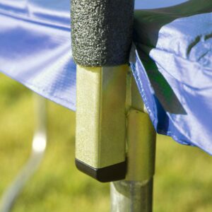 – Enclosure poles are covered with soft foam padding and positioned away from the net to give extra space for jumping