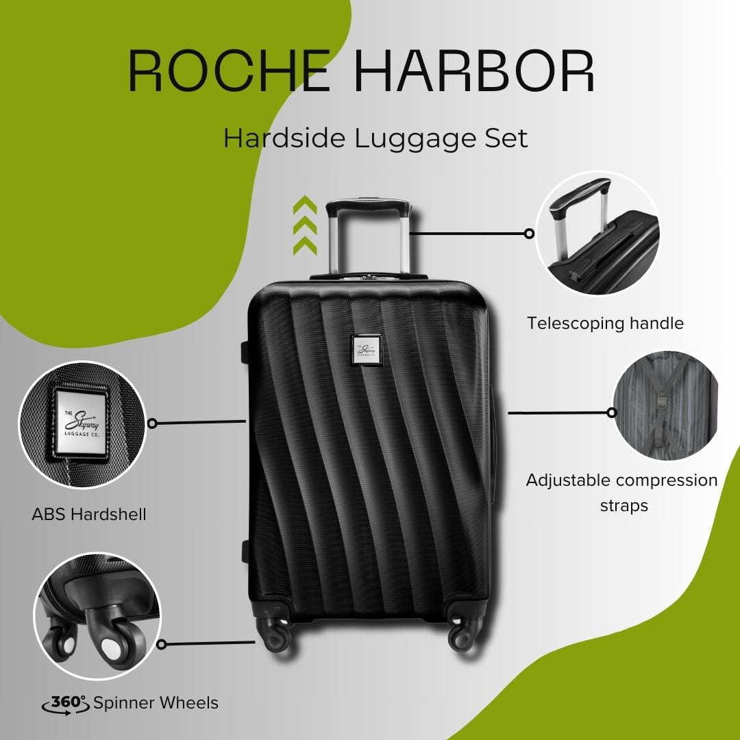 Skyway Luggage Roche Harbor Hardside 3-Piece Luggage Set with Spinner Wheels, Black