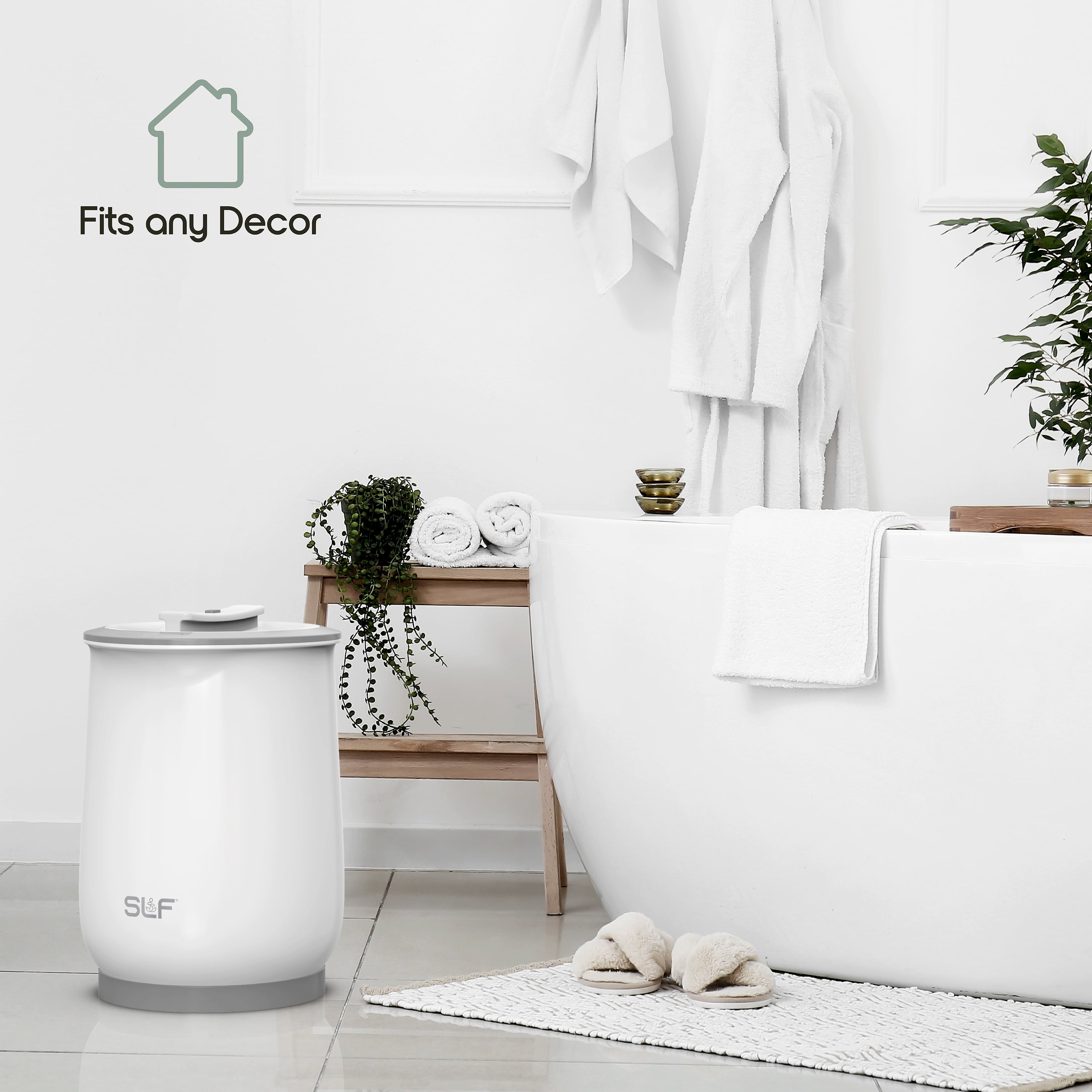 Enjoy the luxurious comfort of a warm towel after every bath with the SLF Luxury Towel Warmer! Simply place your favorite towel, blanket, or bathrobe inside of the large 20L bucket, adjust the heating timer to your liking, and get ready to be enveloped in a cozy, toasty cocoon. This towel warmer’s one-button operation makes it simple to use, while the pull-up towel basket makes retrieving your towel safe and easy! With the SLF Luxury Towel Warmer, you can experience the spa-worthy luxury of freshly warmed towels in your own home.