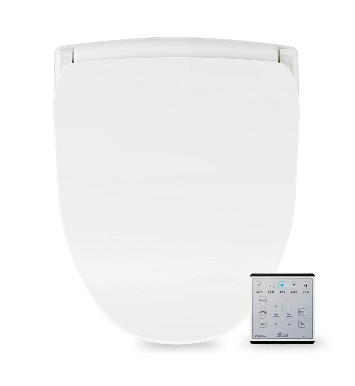 Bio Bidet Slim TWO Bidet Smart Toilet Seat in Elongated White with Stainless Steel Self-Cleaning Nozzle, Nightlight, Turbo Wash, Oscillating, and Fusion Warm Water Technology with Wireless Remote