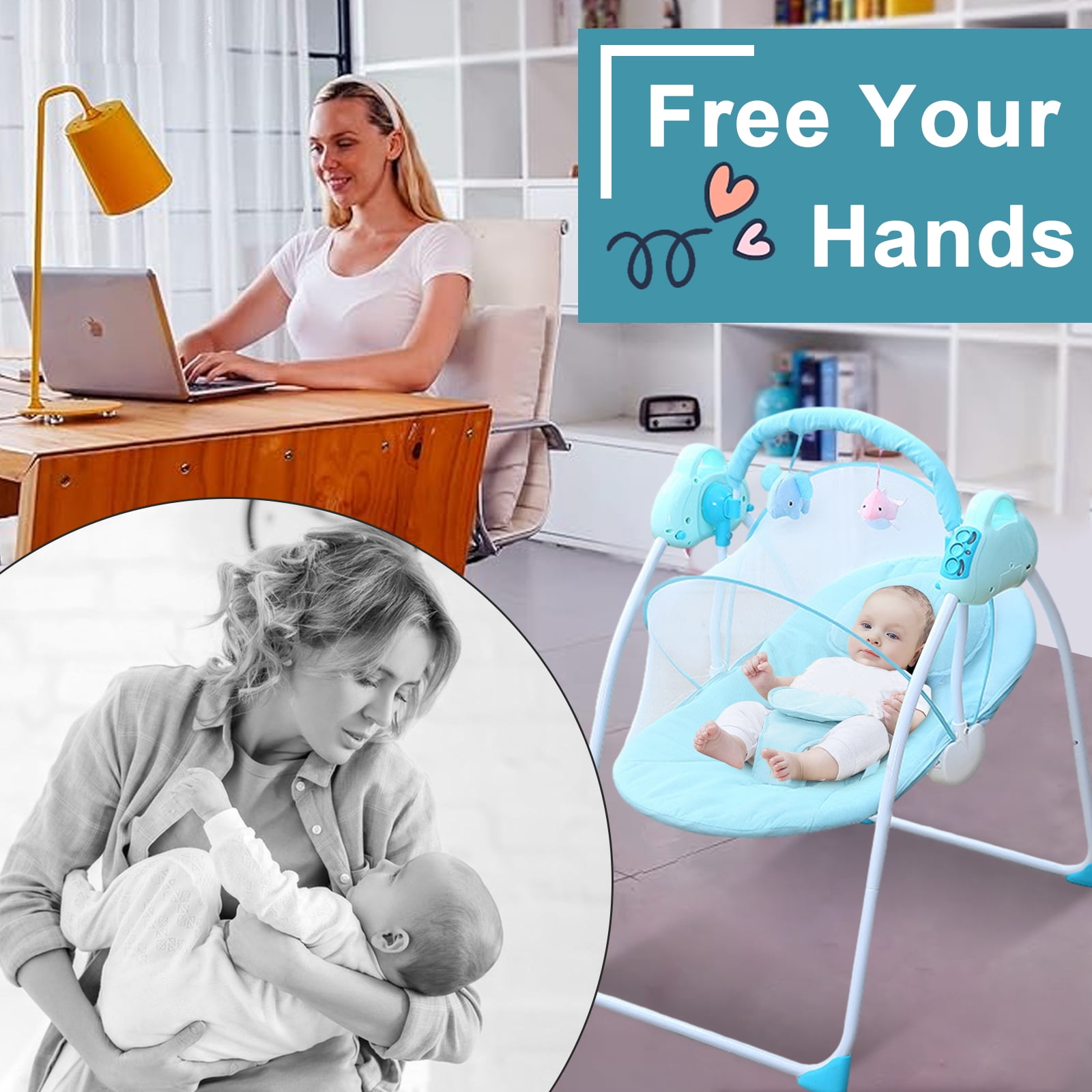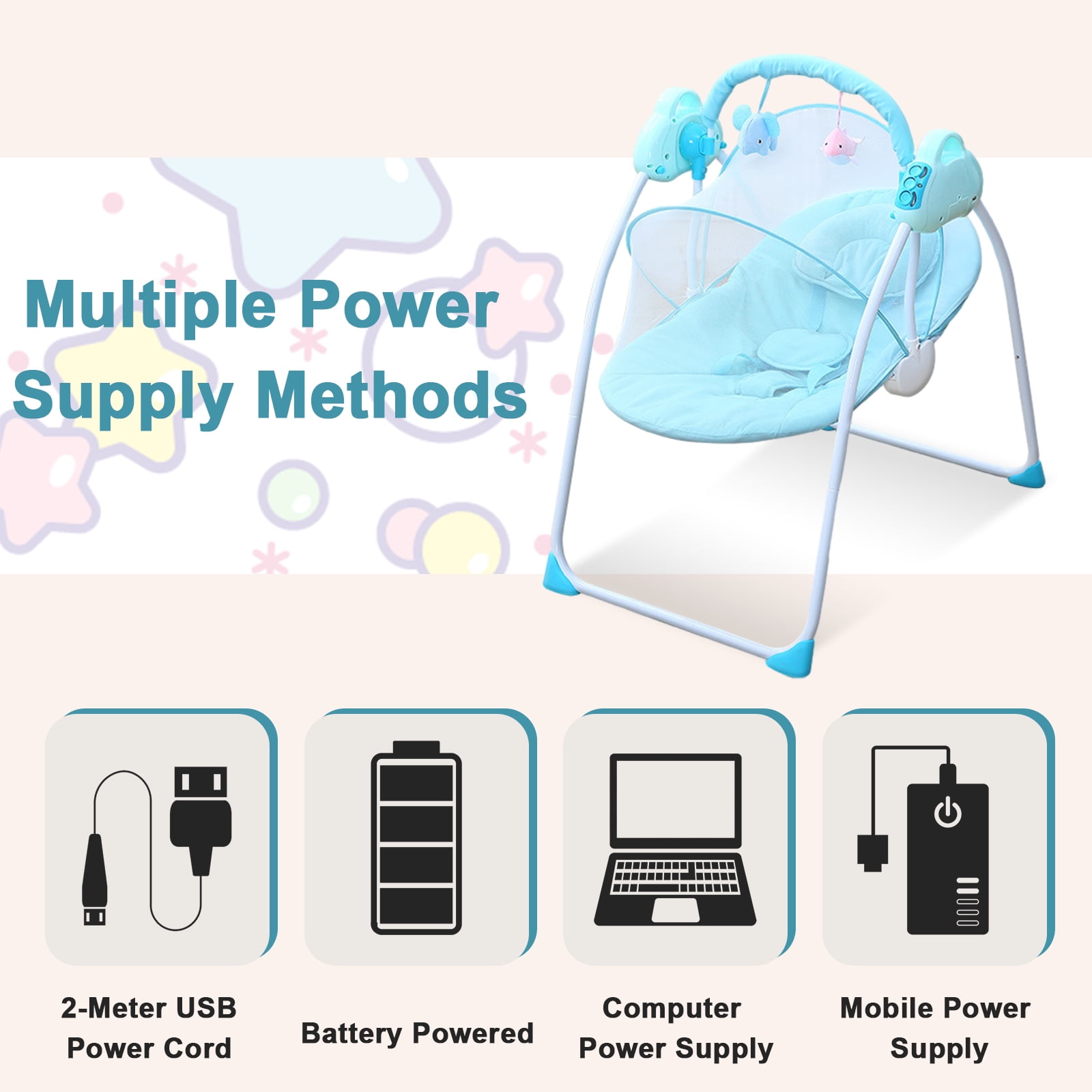 Great Relief for Moms & Dads–Featuring 3 swing angles, this baby swing moves at a constant speed so babies can quickly get familiar and fall in love with its pace. It relieves moms and dads from holding the baby all day and especially at midnight. Anytime needed, it swings your baby, comfortably and soothingly. Sweet Lullabies & Timing Function–This baby rocker comes with 12 built-in lullabies. It also supports connecting to your phone so you can play whatever you want your baby to listen to, a piano piece or a lullaby that you’ve heard when you’re a baby. Let it soothe your baby to sweeter dreams while swinging gently. Ergonomics for Comfort — With arc-shaped design, giving him/her enough security. Removable pillows help adjust height accordingly, and thicker, padded, stretchy pillows also prevent babies from flat or head tilted. Easy to Power Up & Control– Made for easy use, it can work once connected to a power outle. With the handy control Button and remote, you can play a lullaby, set a timer, and adjust the wiggle Angle when you’re doing chores or busy with electronic meetings with just one click. Detachable & Machine Washable–The detachable fly-net, pillow, and seat cover add great convenience for machine wash. It measures 20.5″*27.6″*33.46″ , fitting in most rooms easily. Material: Alloy Steel/ Polyester Fiber/ ABS Type: SLLINGLUO Infant Baby Swing Design: Electric,with USB Interface Applicable Age: 0-18 Months Weight: Below 44lbs Size: 20.5″*27.6″*33.46″ Color: Gray,blue,pink Power Supply: 5v/1a Power: 1-3w Style: Cartoon Weight: 8.8lbs Packing: 1 Piece
