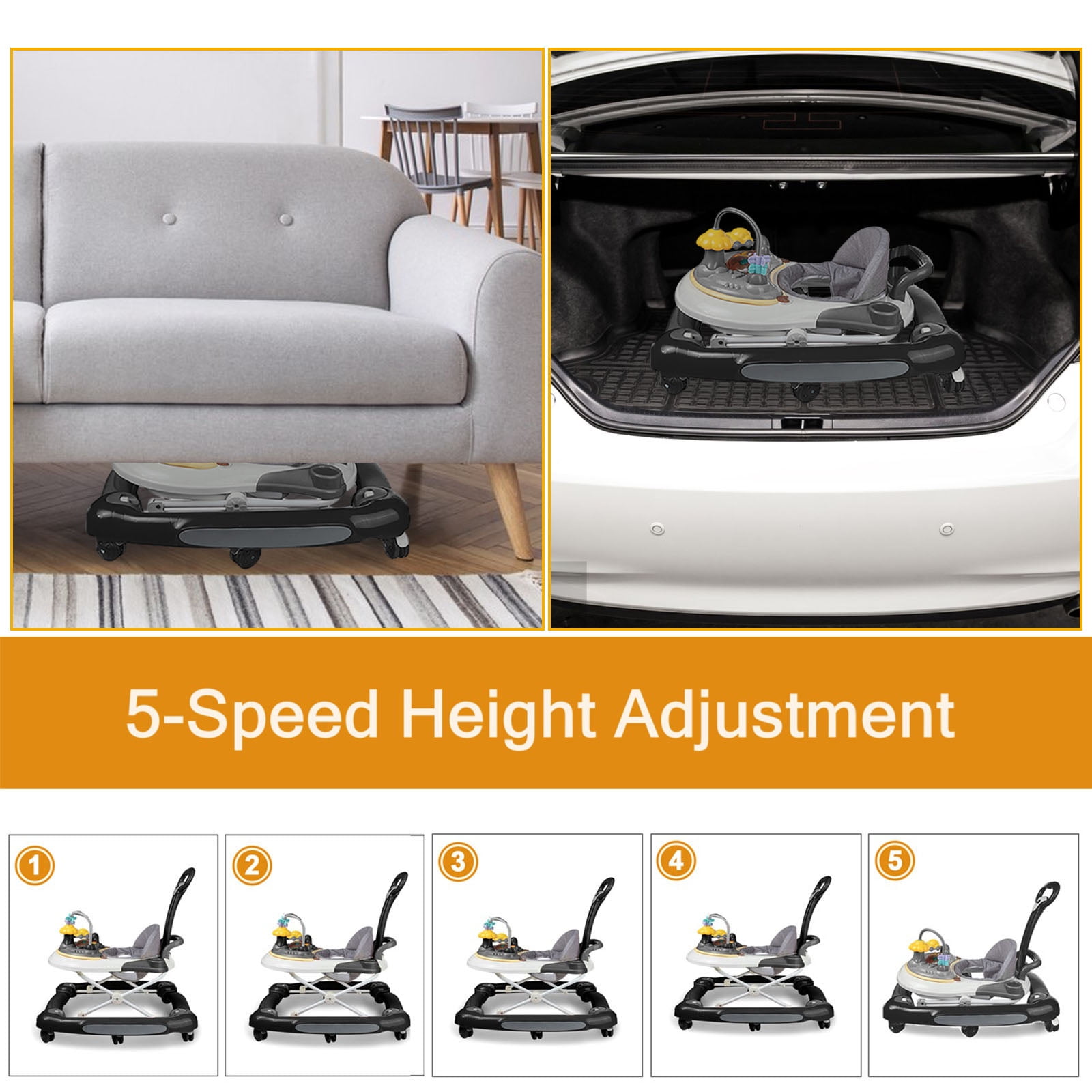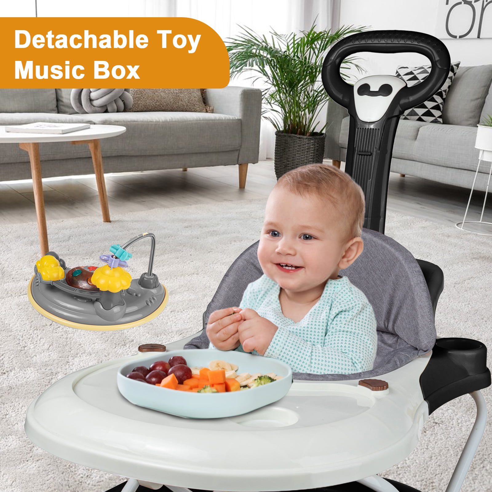 SLLINGLUO Music Lights Baby Walker for Boys and Girls, Infant Walker with Toys, Adjustable(Black)