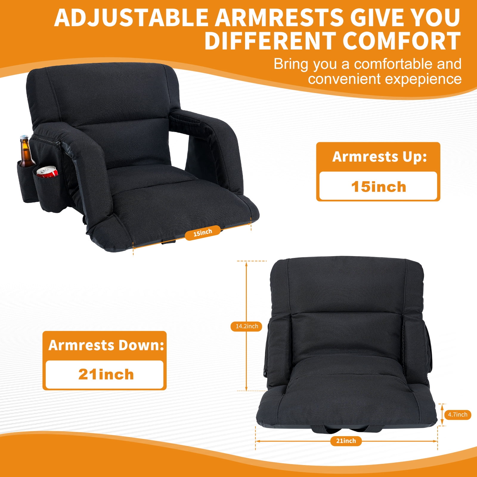 Slsy 2 Pack Folding Stadium Seats for Bleachers with Back Support, Extra Thick Stadium Seats Bleacher Seats with Backs and Cushion, 6 Reclining Positions Foldable Stadium Chair for Outdoor Or Indoor
