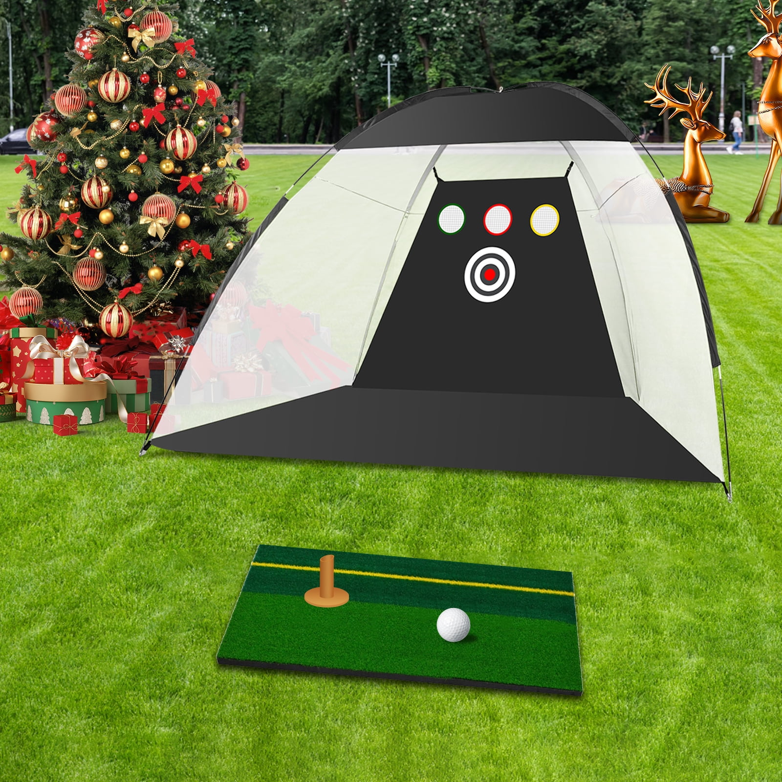 Slsy Golf Net with Hitting Mat, Golf Balls, Golf Tees, 10x7ft Golf Practice Net w/ 3 Aim Golf Target, Portable Golf Training Net, Driving Net for Outdoor/Indoor/Backyard