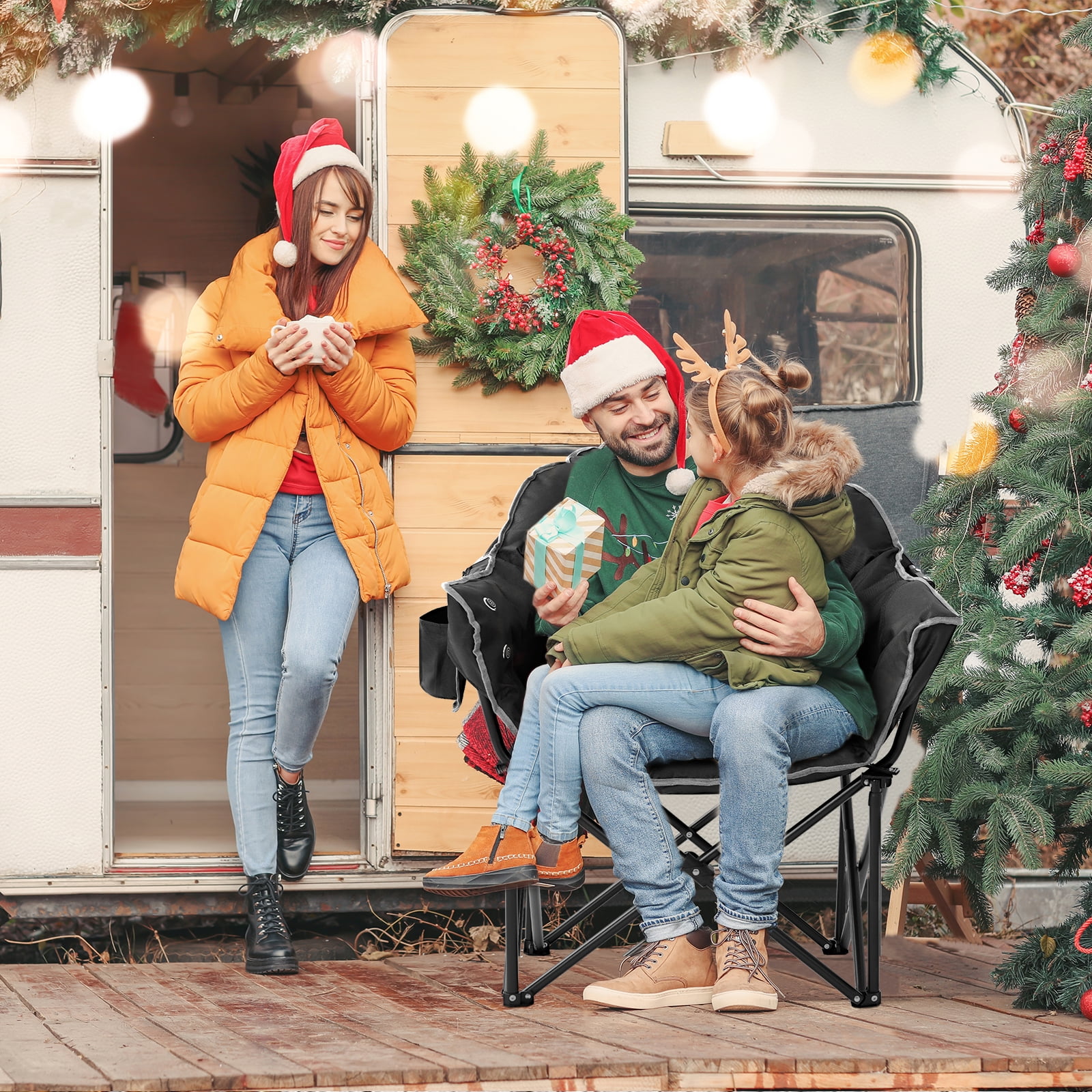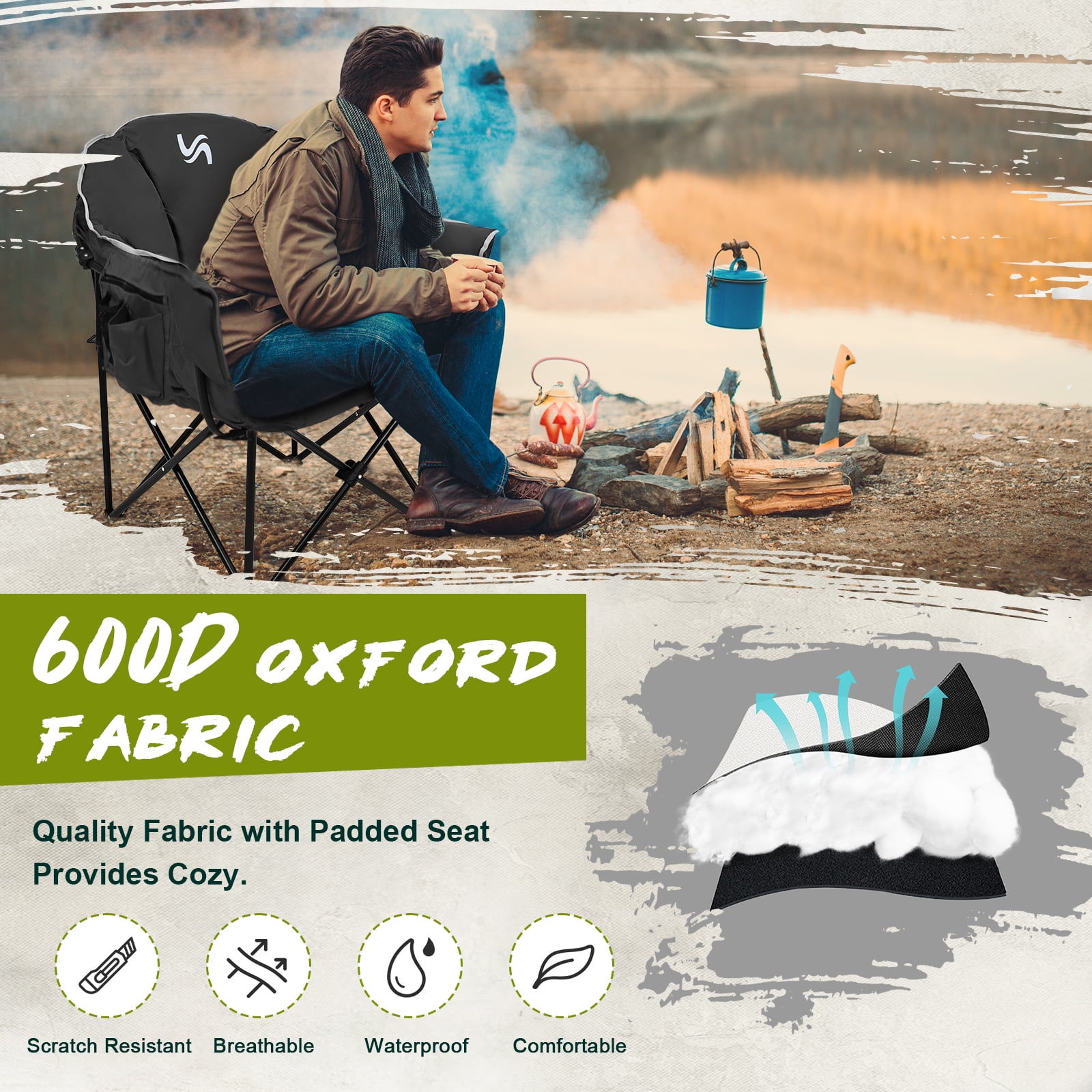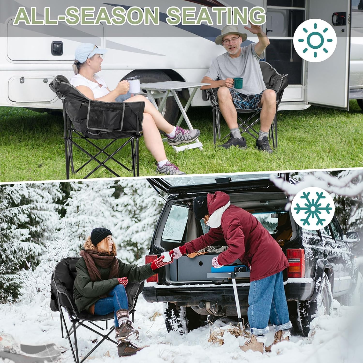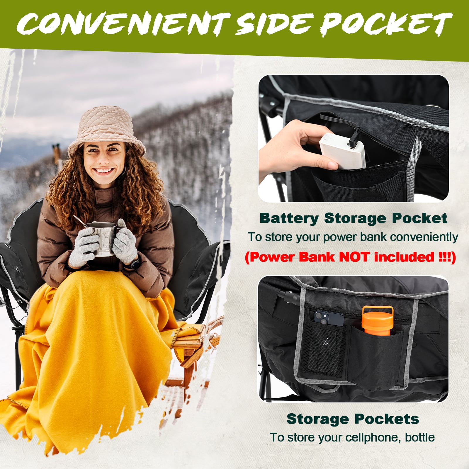 Slsy Oversized Heated Camping Chair, Heats Back and Seat, 3 Heat Levels, Heated Folding Chair with Cup Holder, Rich Pockets, Travel Bag, Supports 500 lbs