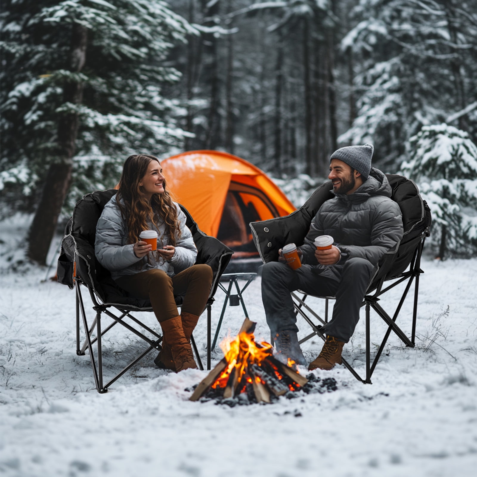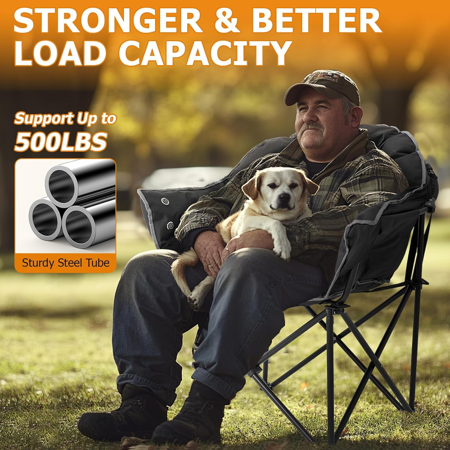 Slsy Oversized Heated Camping Chair, XL Padded Patio Lounge Chairs with 3 Heat Levels, Portable Folding Heated Chair Round Moon Saucer Folding Lawn Chair Outdoor Chair for Camping, Lounge Patio