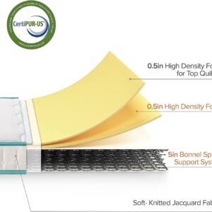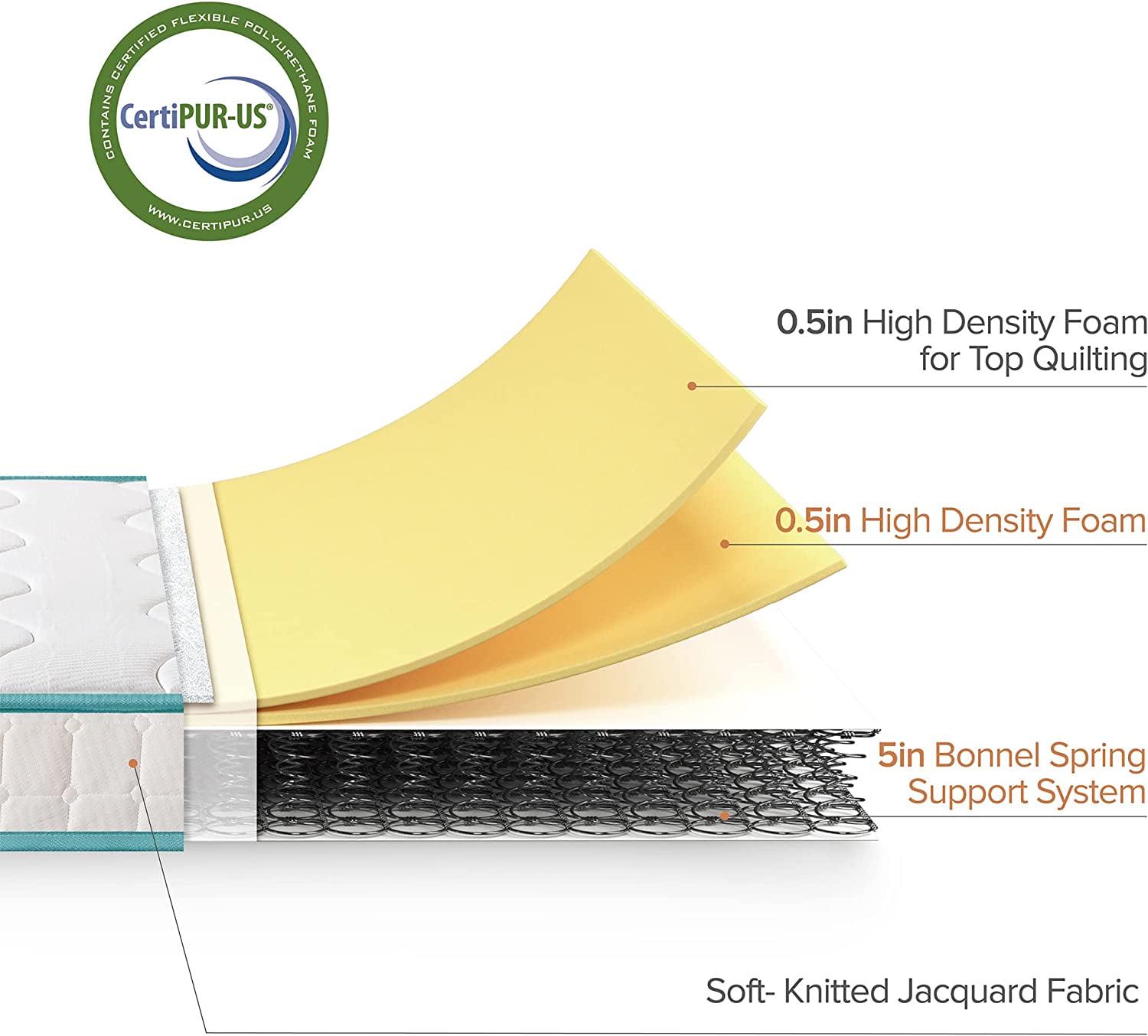 SUPPORT YOU CAN COUNT ON With its plush microfiber quilting, supportive foam layers and durable steel innersprings, this traditional spring mattress delivers even support from head to toe,TRADITIONAL COMFORT, MODERN DURABILITY Made with 1 inch durable high-density foam and a 5 inch base layer of heavy duty steel innersprings, the tight top spring mattress offers support with a hint of softness that s built to hold up for many years of snoozing. An ideal choice for stomach sleepers and petite to average-weight individuals,CERTIPUR US CERTIFIED – Highest quality foam is CertiPUR US Certified for durability, performance, and content,EXPERTLY PACKAGED – Our technology allows this mattress to be efficiently compressed into one box that s easily shipped and maneuvered into the bedroom simply unbox, unroll and this mattress does the rest, expanding to its original shape within 72 hours,Worry-free 10 year limited included twin mattress supports a maximum weight of 250 lbs, while all other sizes can support up to 500 lbs