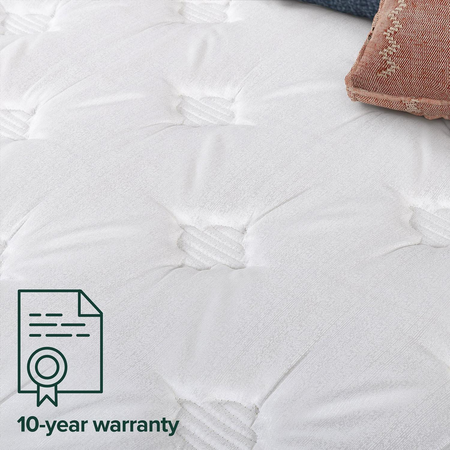 If even and perfectly cushioned support strikes your fancy, then the Foam and Spring Mattress is your ticket to many well-rested mornings to come. Featuring a fiber quilted cover, CertiPUR-US Certified high-density and Visco latex foams, and a base layer of heavy duty steel innersprings, this mattress is equipped with the right blend to let your joints and spine rest comfortably. With a touch of enveloping softness from our Visco latex foam backed by reliable traditional innersprings, this mattress is especially ideal for stomach sleepers and those who enjoy a reactive feel. Rolled and shipped in a box that arrives at your doorstep with a 10-year worry-free warranty in tow, it s equipped with just about everything you need to enjoy smooth snoozing. So all that s left for you to do is tuck in and close your eyes, no sheep-counting required.