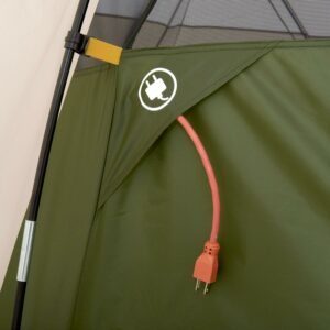 The Slumberjack Aspen Grove 8-Person Hybrid Dome Tent is the must-have tent for your next family camping trip. This Off-White/Green144 square foot tent comfortably sleeps 8 people in sleeping bags or fits two queen size air beds. There is a room divider so that you can have one large room or two separate rooms to create privacy. You can roll the rainfly back or remove it altogether for added ventilation or enjoy a night of stargazing through the full mesh roof. There are many features that make this tent feel like home away from home, including a mud mat to keep the inside of the tent clean, a gear loft with a lantern loop to keep your tent tidy, and an E-Port to run an extension cord so that all your gadgets stay charged. A fully covered entrance creates a 20 square foot vestibule to stow your shoes or other gear. Whether you are getting away for the weekend or enjoying a longer break, grab the Slumberjack Aspen Grove 8-Person Hybrid Dome Tent and let the relaxation begin.