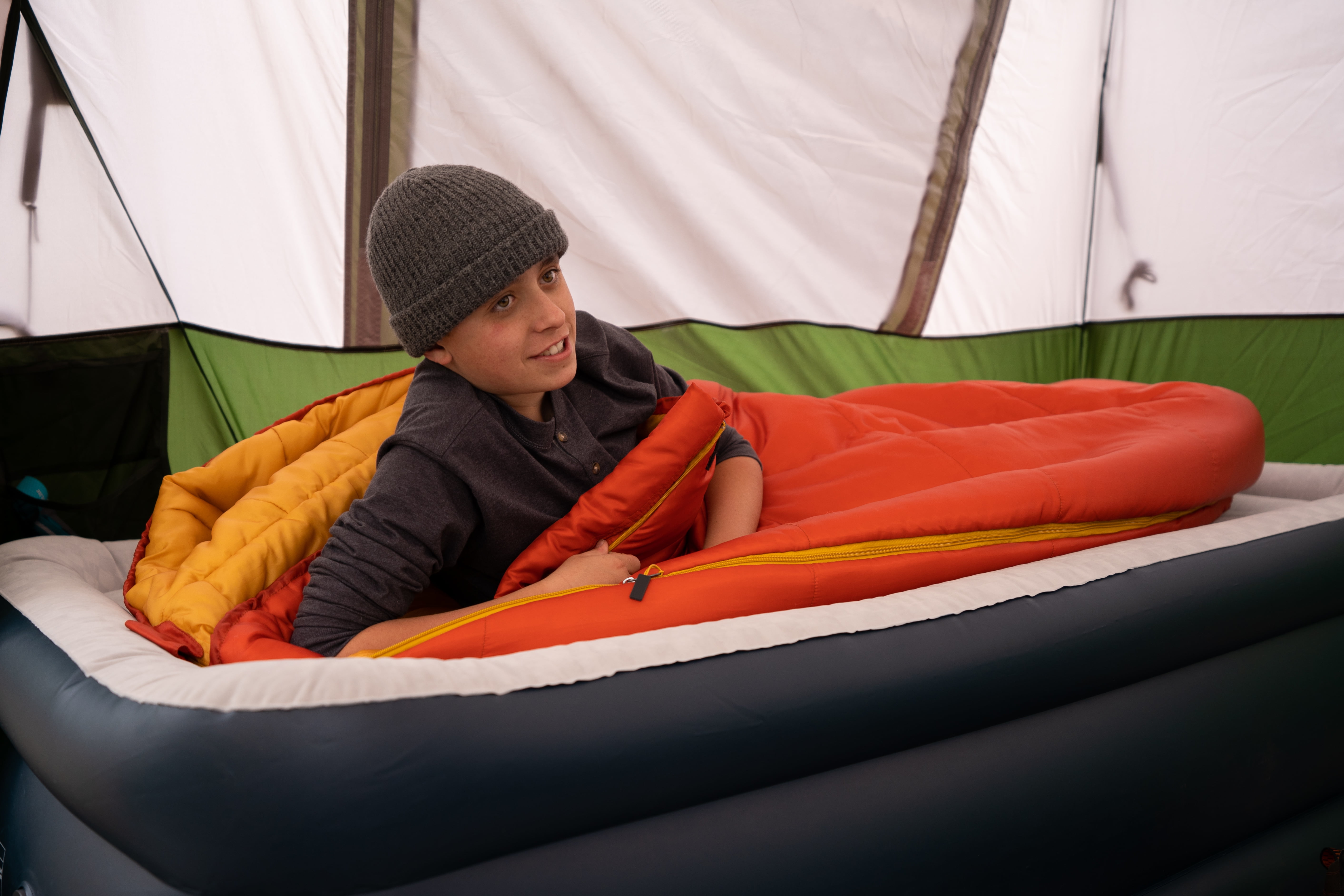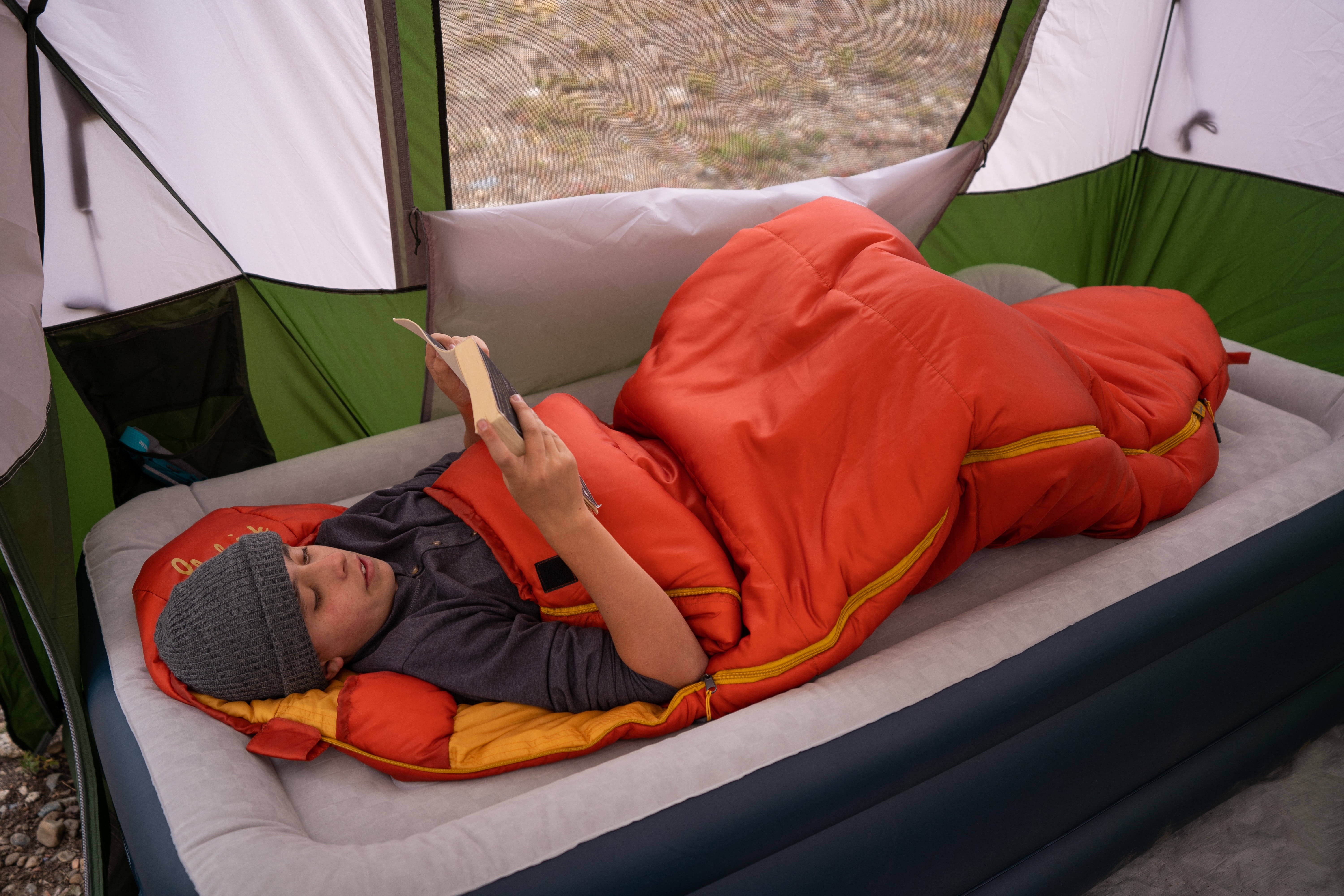Side sleepers, back sleepers, belly sleepers, and those who change positions — we all have our own signature style. The Slumberjack Eagle Falls 20 F Mummy Sleeping Bag is designed with side sleepers in mind and accommodates any and all ways you like to sleep and keeps you warm and cozy, even on cold nights. We took the classic mummy shape and made it extra wide and roomy at the hips and knees. The lofty down alternative insulation packs small to make it an easy companion when you’re heading out to create new memories. Cinch down the hood for extra warmth. The anti-snag, oversized two-way zipper slides easily for getting in and out. For easy storage and carry, it stuffs into a compression stuff sack for storage and carry. Plus, it’s machine washable to keep things fresh.