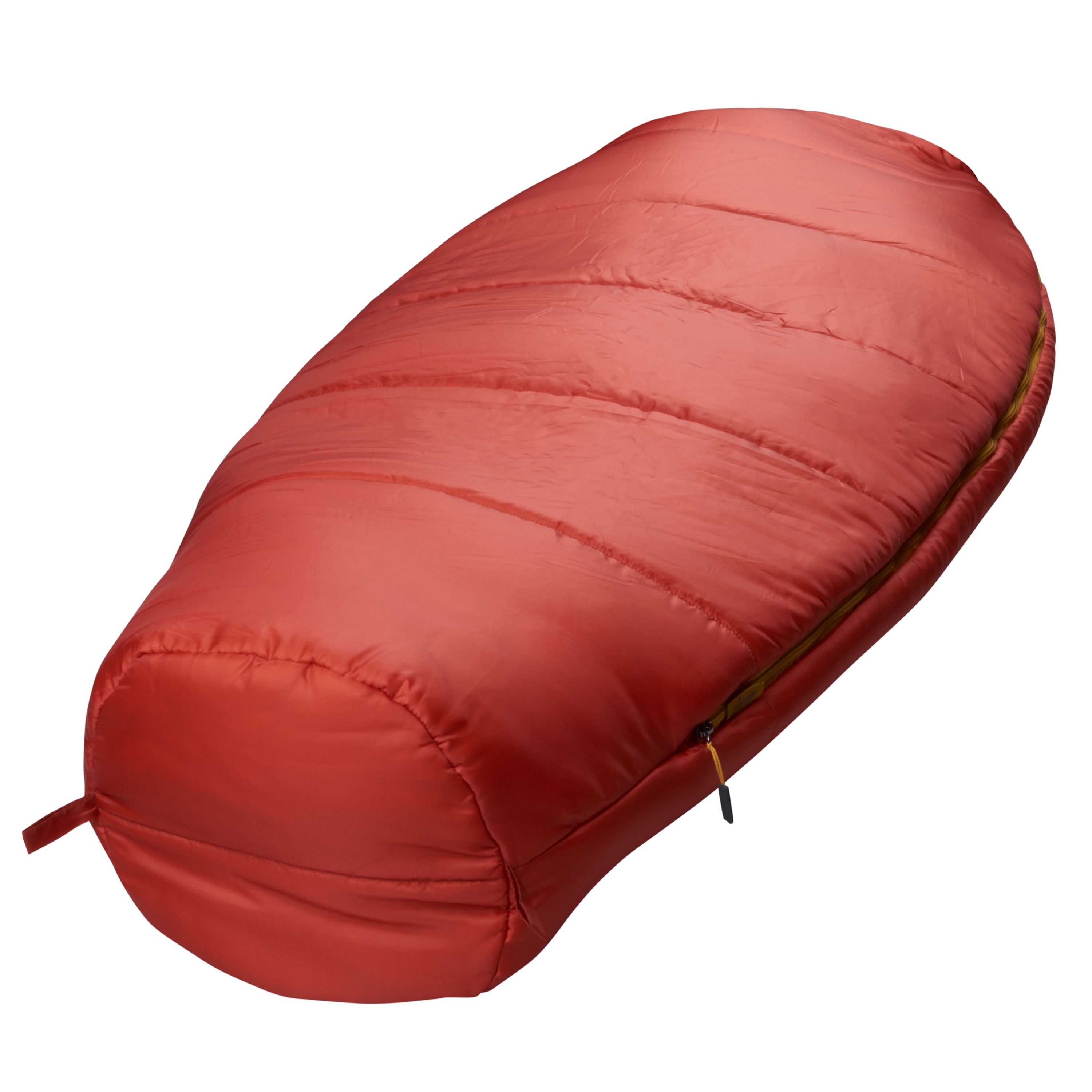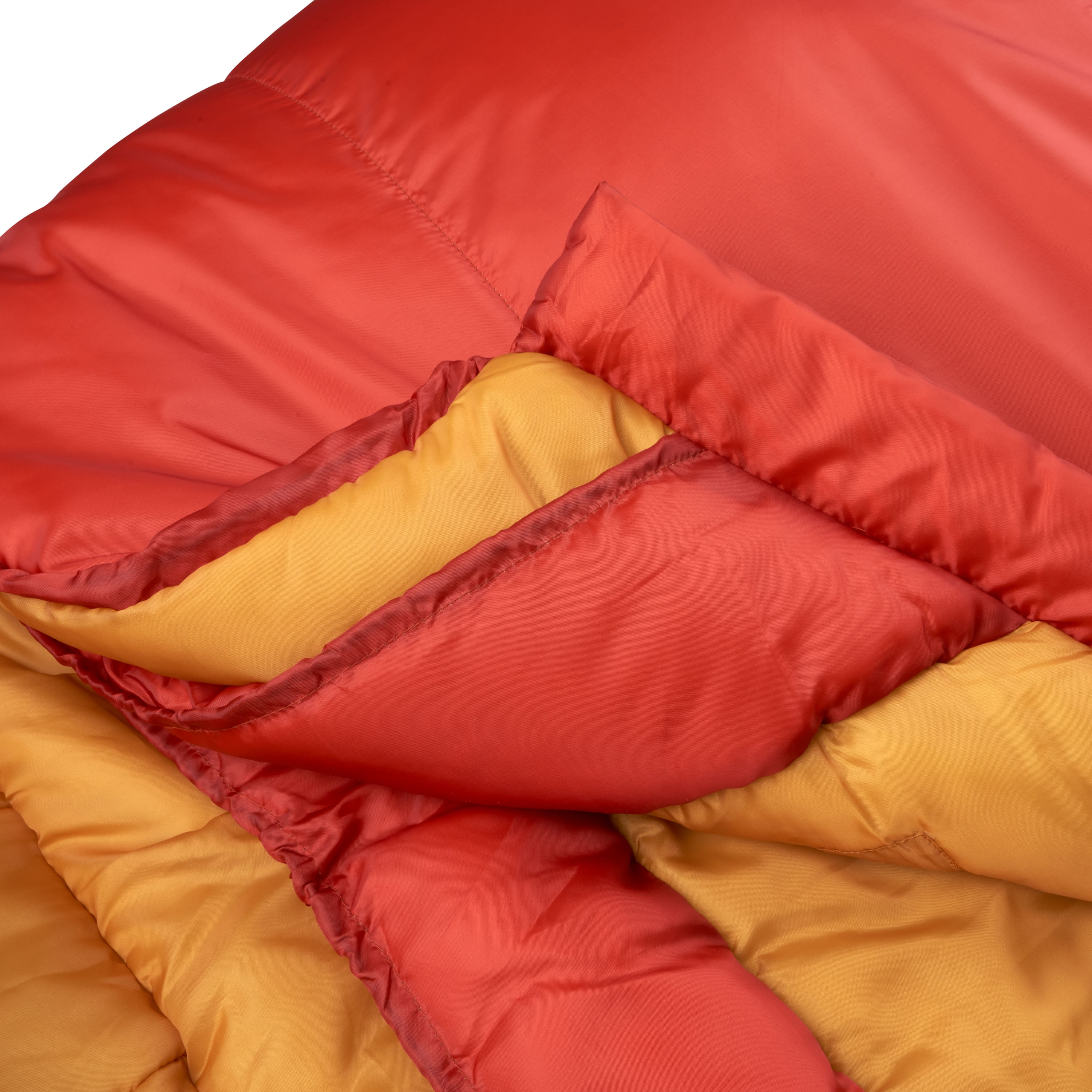 Slumberjack Eagle Falls 20F Side-Sleeper Mummy Sleeping Bag, Orange: Double layer offset quilting with premium down-alternative insulation 35″x88″ Oversized two-way zipper with anti-snag treatment Insulated draft collar and draft tube prevents cold spots Interior accessory pocket Unique shape comfortably accommodates multiple sleep positions Extra-wide at the hips and designed to sleep comfortably for bent knees