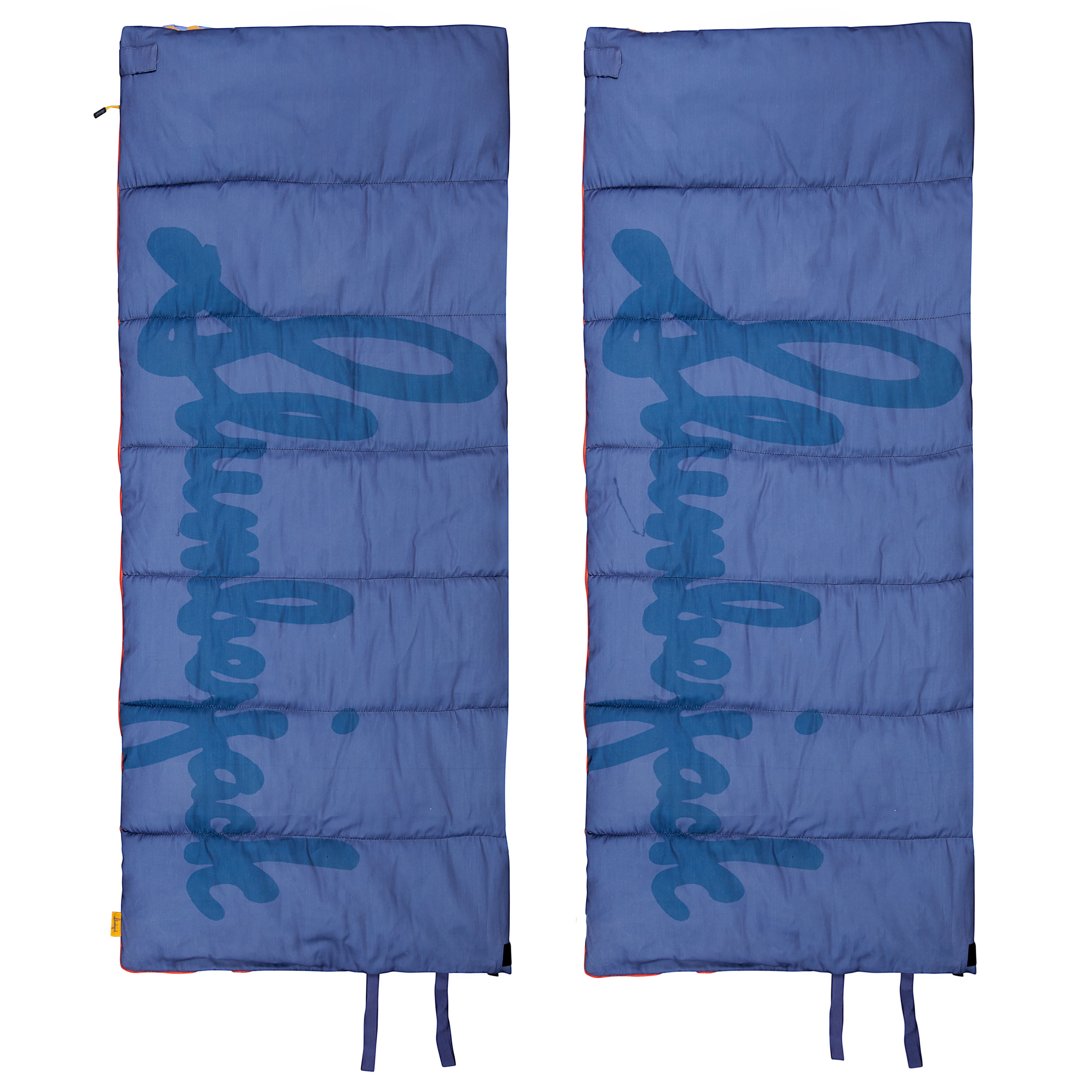 Durable twill shell with soft flannel liner Easily converts to two individual sleeping bags 70″x80″ Oversized two-way zippers on each side of bag Quick-roll elastic straps Oversized dimensions for a comfortable fit Quilted construction keeps fill in place and eliminates cold spots