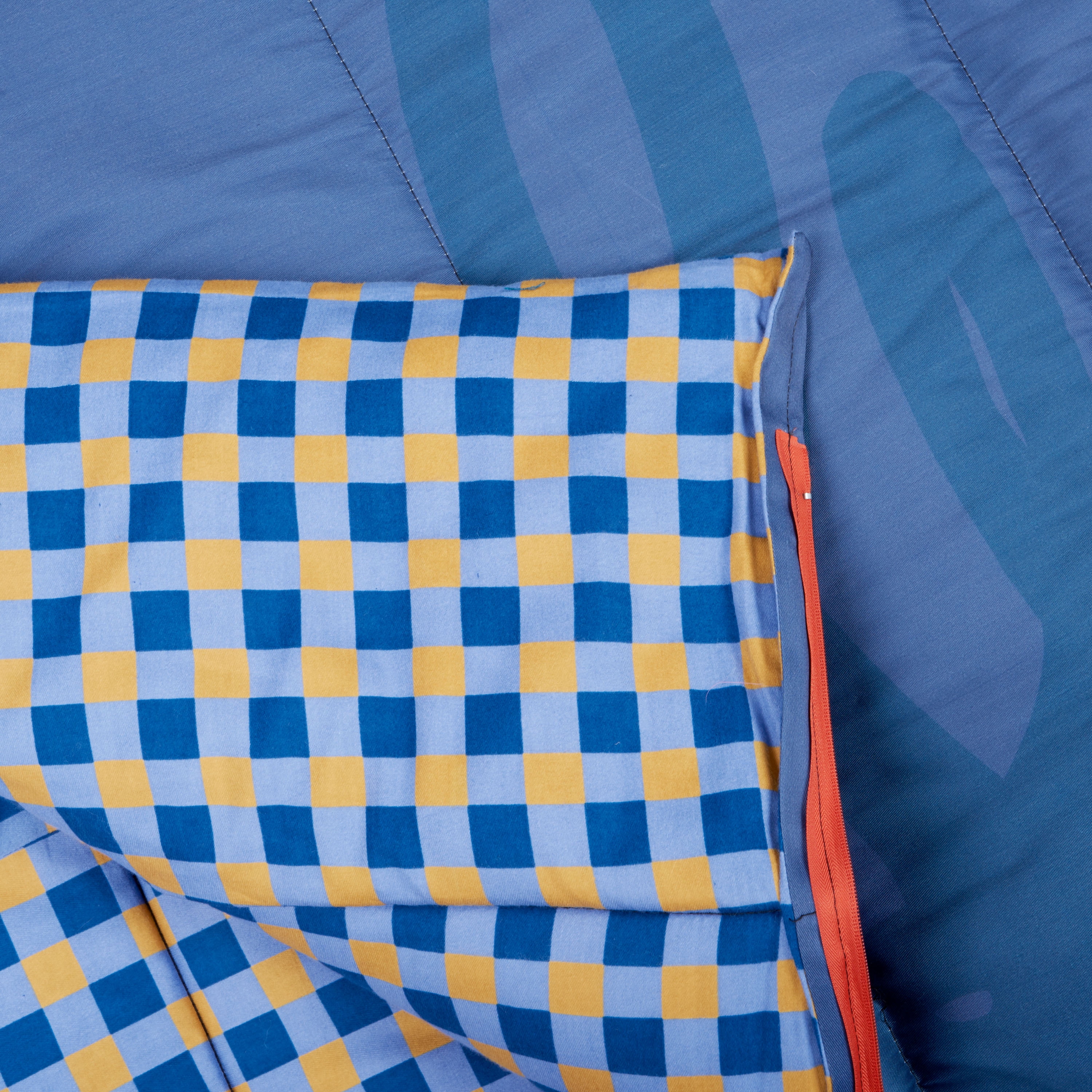 A great day outdoors is even better when there’s someone to share it with. Snuggle under the stars in this comfy two-person sleeping bag. The Slumberjack Grand Lake 30F 2 Person Deluxe Rectangular Adult Sleeping Bag is just right when the nights turn cool. Whether you’re sharing or just want extra space for yourself, this sleeping bag provides plenty of room to move and stretch. You can even unzip it all the way and use this bag as two comforters or turn it into two single sleeping bags. The oversized two-way zippers on each side provides easy ventilation and makes it simple to zip open and closed for all the options. Instantly cozy, the warm synthetic fill pairs with a soft, durable twill shell and quick warming cotton flannel liner. Packing up is simple with the quick roll elastic straps and stuff sack for storage. Plus, this bag is machine washable so you can keep it looking like new through all the years of adventures.