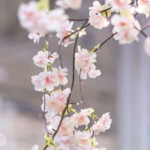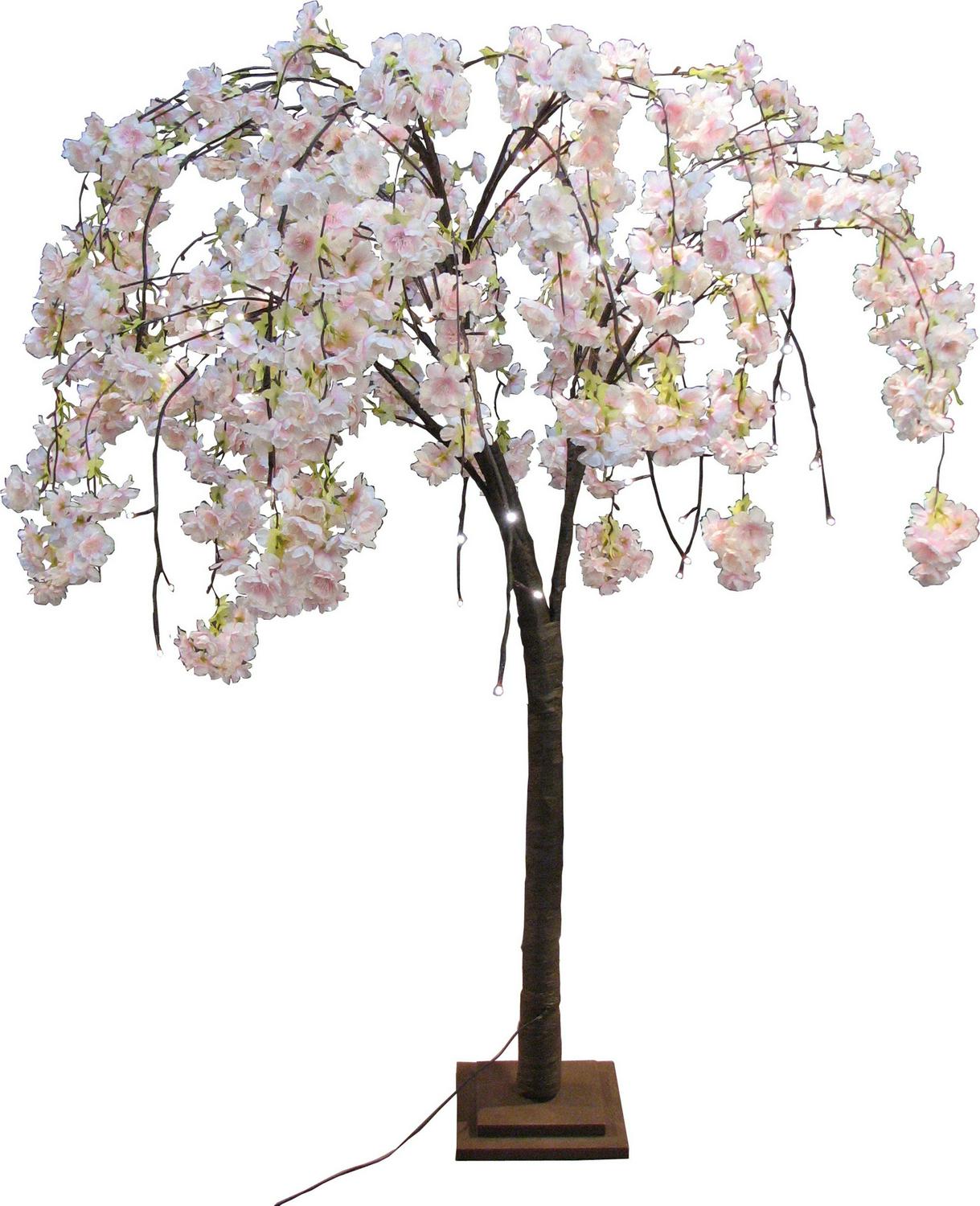A small pink cherry blossom tree with 66 warm white LED’s. This tree is 47 inches tall and can only be used indoors. It is powered by an AC adaptor.