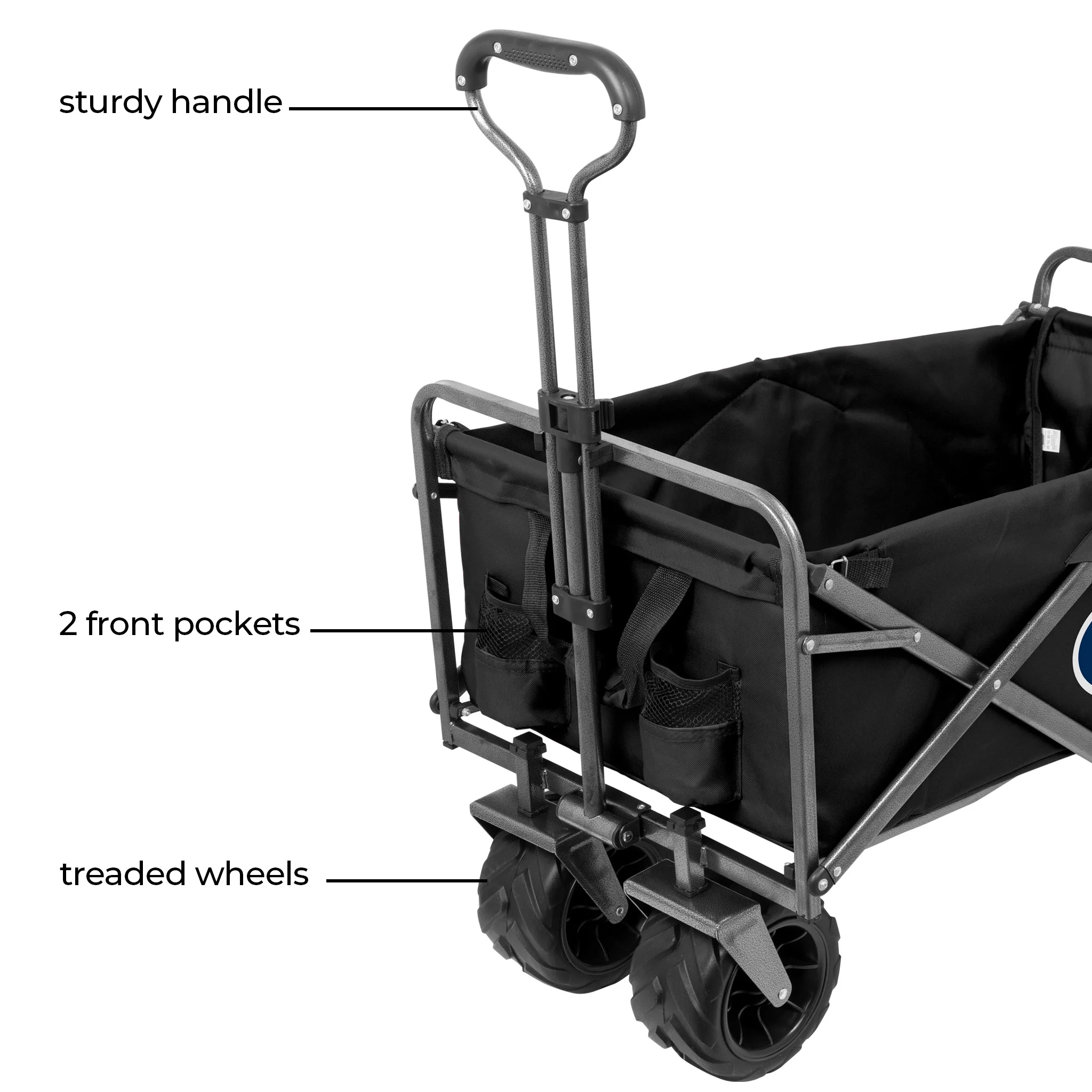 Sometimes days outside in the fresh air are as needed as game days. When those days arise, you need this Heavy-Duty Collegiate Utility Wagon. The all-terrain design is perfect for carrying items for a tailgate, picnic, or even day at the beach—plus you can show off your school’s pride. Package Includes Heavy-Duty Utility Wagon. For trips to the beach, garden, camping, outdoor sporting events or family outings. Features and Benefits Sturdy steel frame construction. Durable all-terrain wheels.2 side pockets for extra storage. Folds for easy storage Product Specifications Dimensions: 20.15(L) x 35.5(W) x 22.5(H) inches.