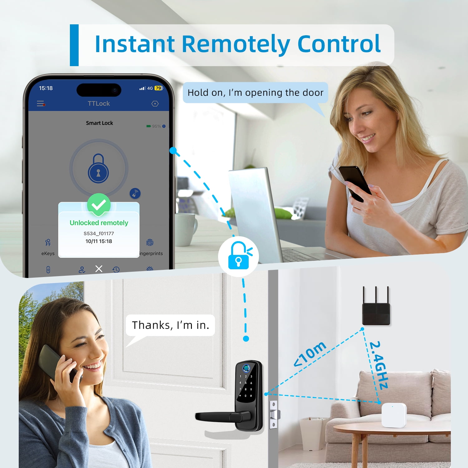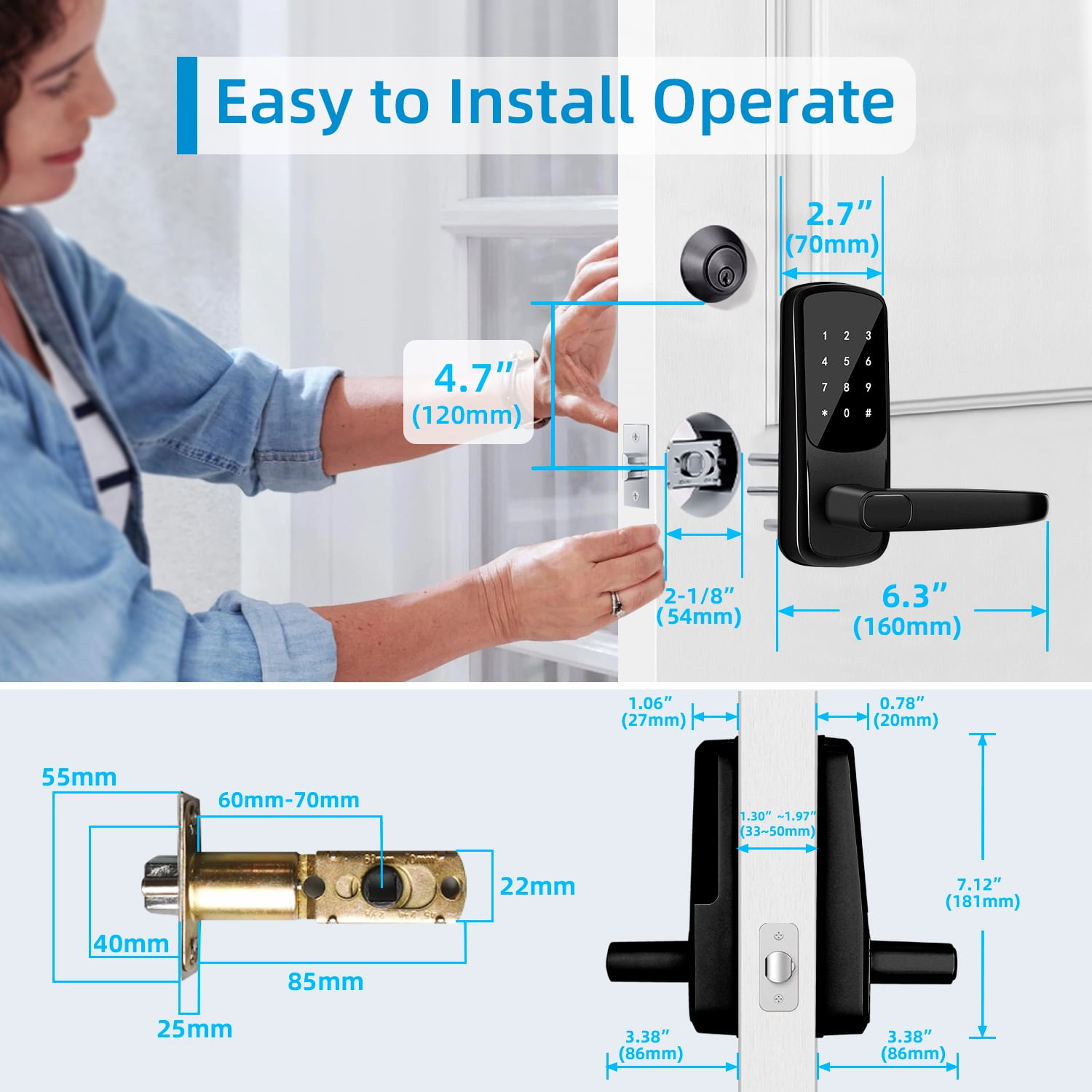 Upgraded AI Biometric Door Lock:Fingerprint door lock recognition gets more precise with every touch, unlock the door less than 0.3seconds, so you don’t have to try again and again to get in.【7 in 1 Keyless Entry Door Lock】 biometric thumbprint, bluetooth APP, keypad passcode,card,physical key, iWatch and Alexa (need extra G2 gateway). Upgrading and streamlining your home access methods, offer personalized access for your children, elderly, and other family members. Super Easy To Use:After authorizing the bluetooth permission to TTlock App, Control access with a simple swipe on the smartphone app.Quickly and easily share permanent,one-time temporary codes or scheduled access with friends, family.If pairing the smart door lock with G2 Gateway (The Gateway is sold separately), you can lock/unlock your smart door knob anywhere anytime,check real-time access logs and activate voice control feature. Just connect your door lock to Alexa or Google assistant to enjoy hands-free operation. Multi-Property Management:Elevate property management with an integrated free-for-life TTLock app that offers convenient control of all your smart locks. You can Generate a passcode remotely internet and share it to your visitors and also revoke access anytime.Perfect for Airbnb hosts, apartment rental managers, and self-housing residents, it provides a hassle-free solution for landlords with multiple properties. Security and Durability:Your peace of mind is our top priority,The electronic door lock equipped with auto-lock,anti-peeping code, backlit keyboard and low battery alert to enhance your home security. Our keyless entry door lock is built to withstand extreme temperatures (—22℉ to 122℉) and is IP65 waterproof.you can use this deadbolt smart lock as a fingerprint lock, keypad locks, door lock with key or door lock with code,for bedroom door lock,interior door lock,front door lock and so on. Easy Installation & Worry-free Warranty:No extra drilling, just need a screwdriver, you can quickly install digital door lock in a short time, no need for costly locksmith services. Quickly replace your existing front door handle, door lever, door knob, deadbolts. Reversible handle fit both left and right-handed doors. (Tips: Upper lock and lower lock distance must be >4.7”(120mm).MSR X6 keypad door lock with handle offers 30 day-free return policy, a one-year warranty period, and lifetime after-sales customer service. Any questions please feel free to contact us.