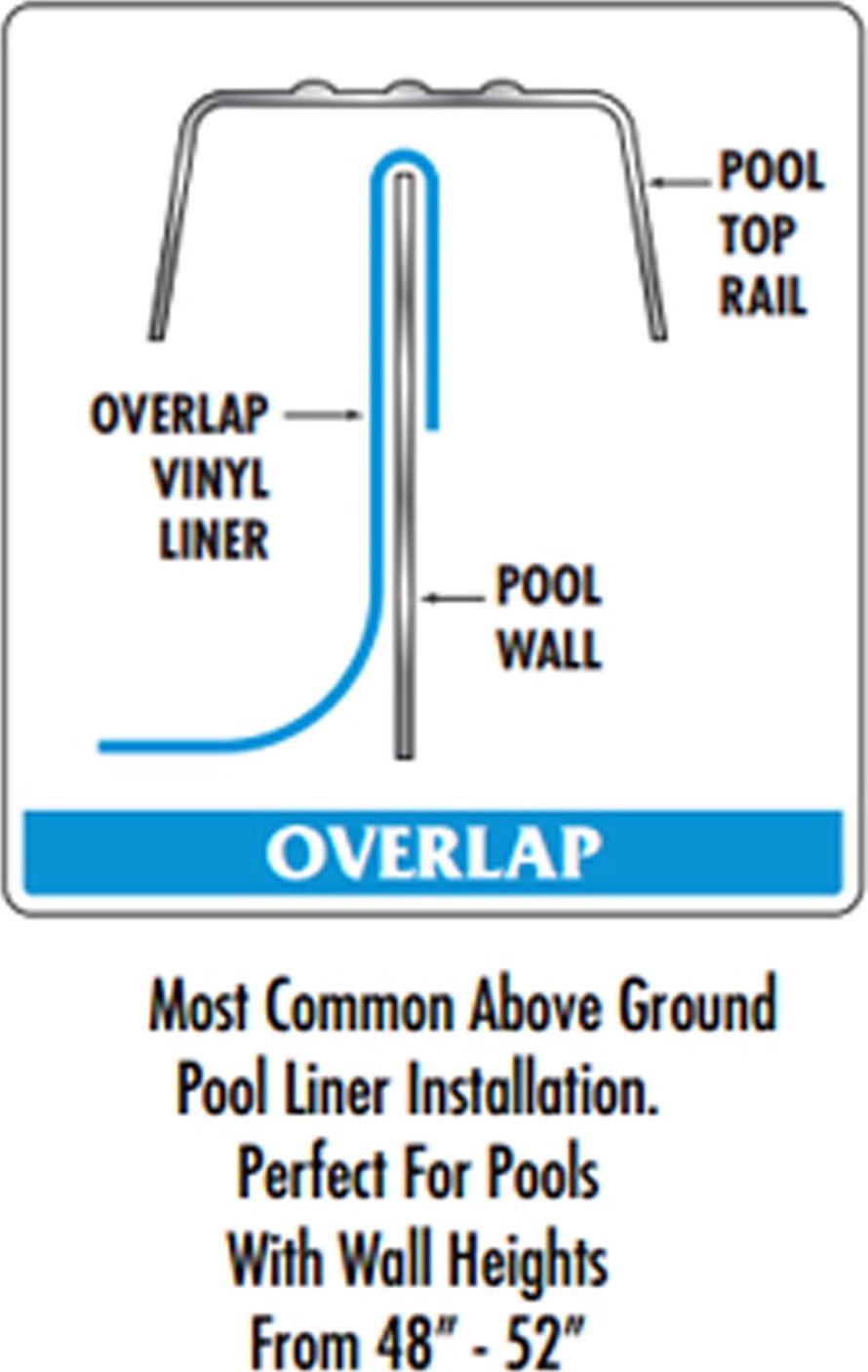 SmartLine overlap swimming pool liners are designed to fold over the top of your pool wall and do not require a bead receiver. Overlap liners are held in place with coping. Be sure to check the measurements of your swimming pool to assure the correct size is purchased. Pool height is determined by measuring the outside wall from the ground to underneath the top rail.