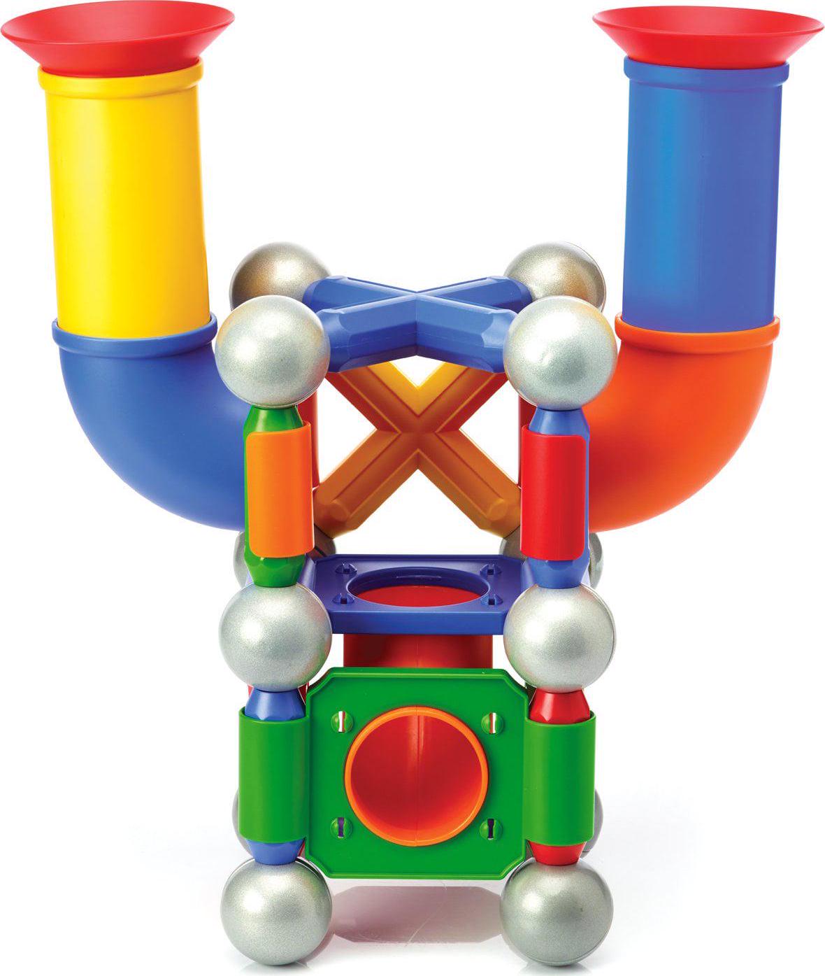 - SET INCLUDES: 71 colorful pieces with strong bars, metal balls, tubes, connectors and a slide.