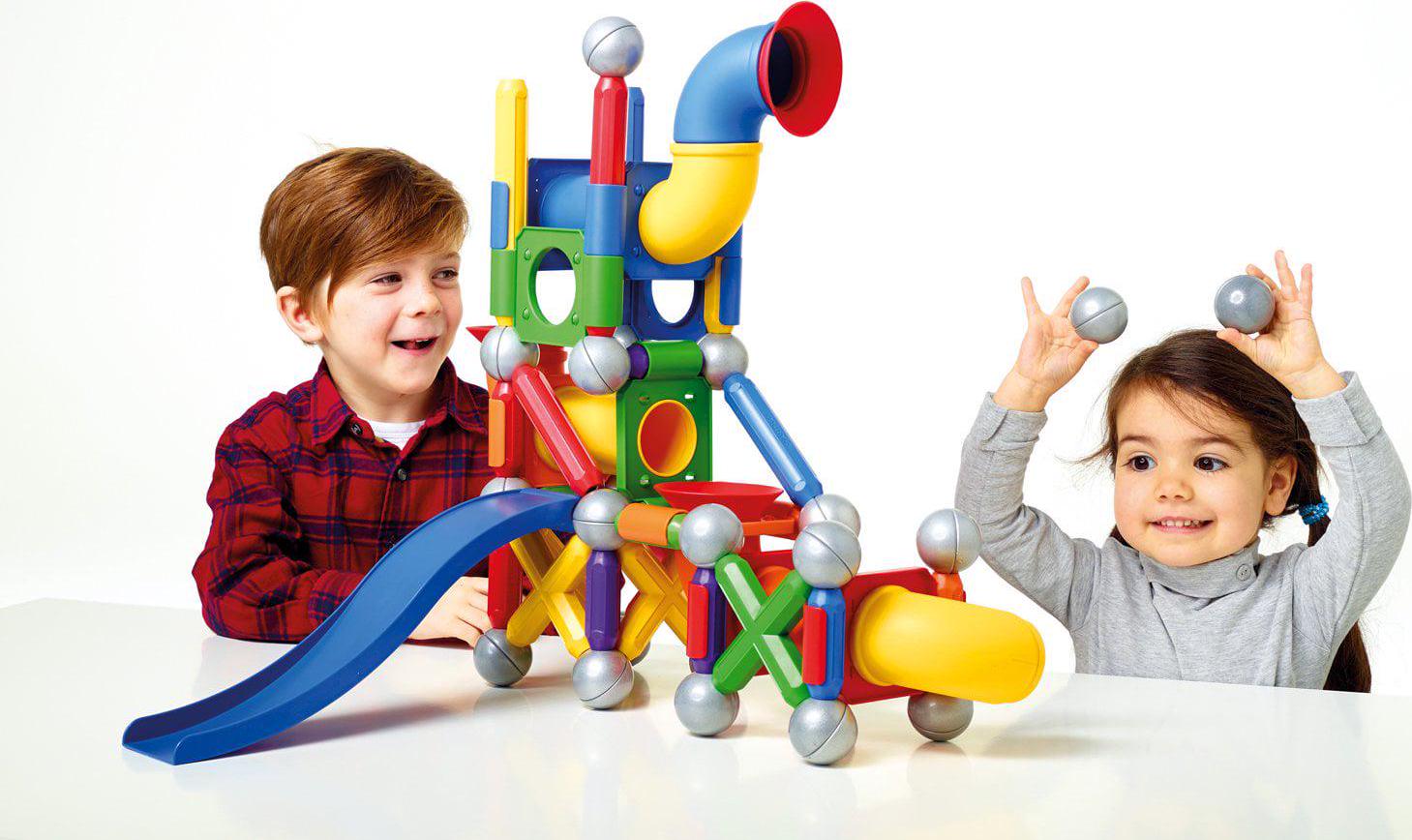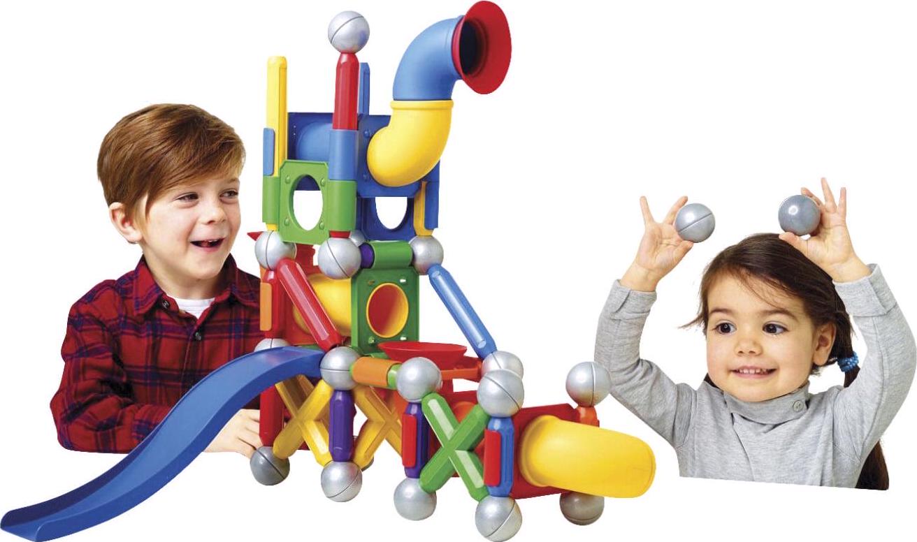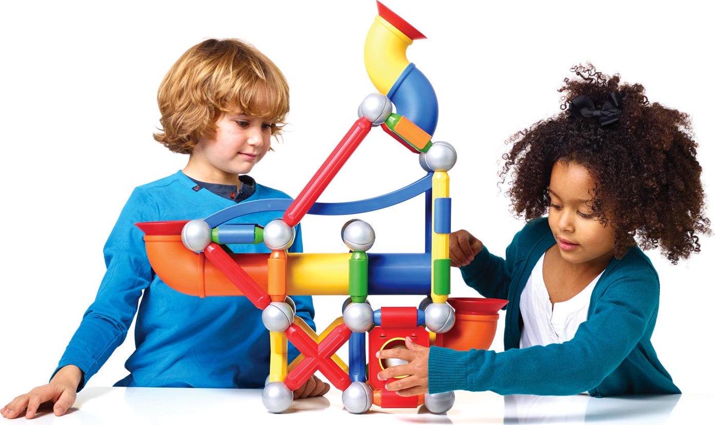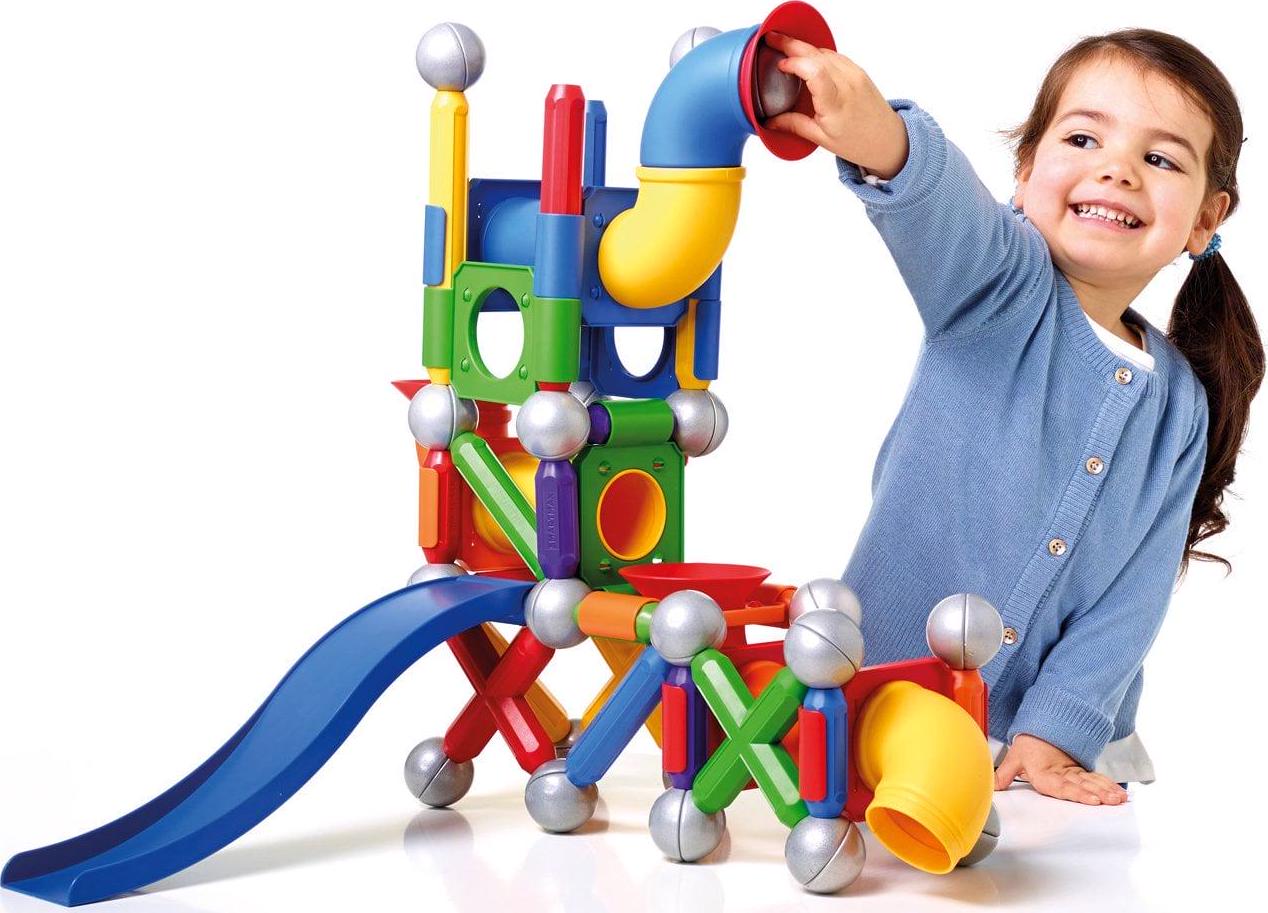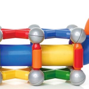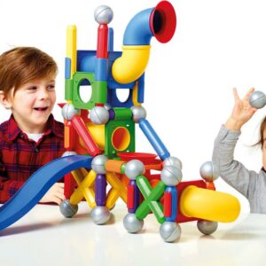 – SET INCLUDES: 71 colorful pieces with strong bars, metal balls, tubes, connectors and a slide.