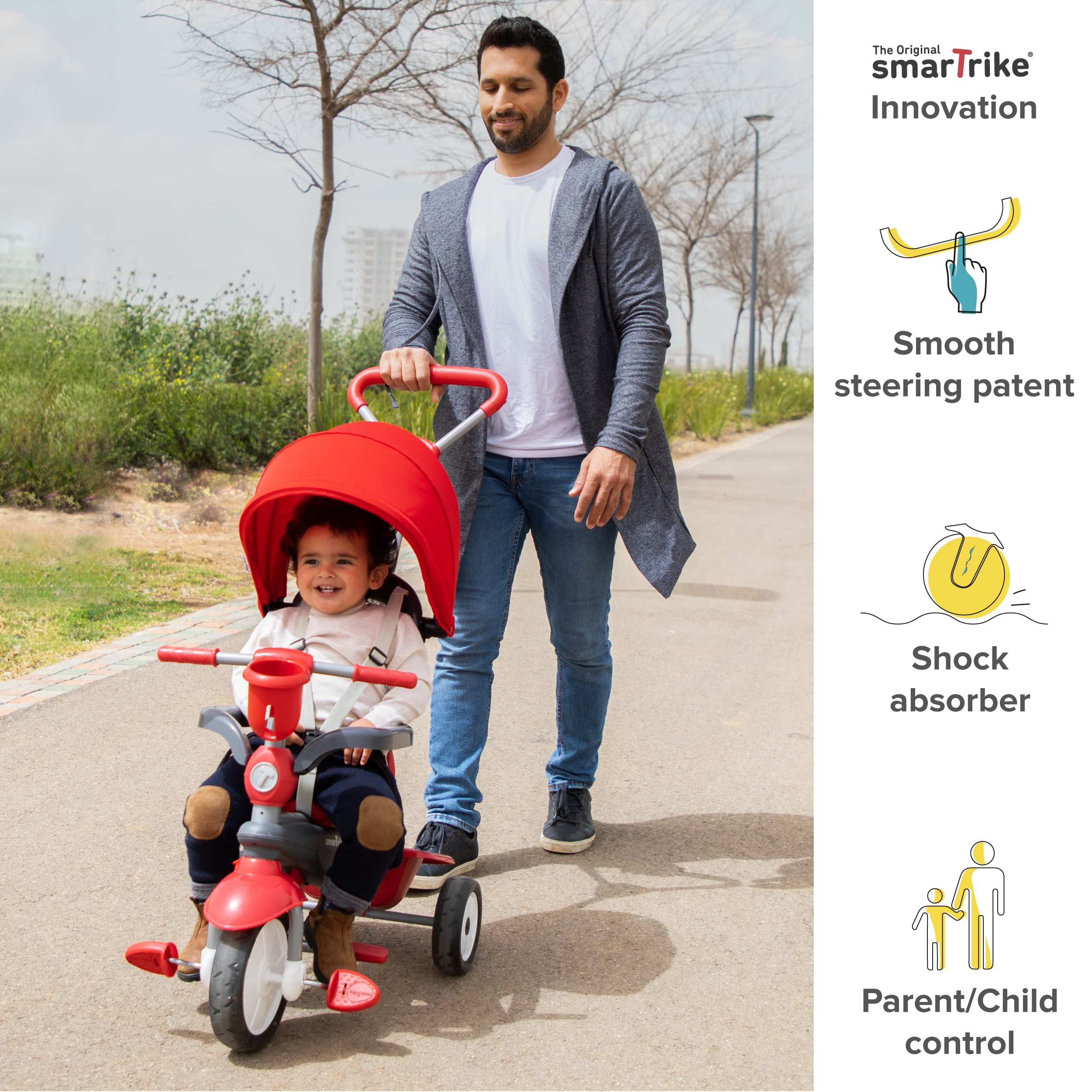 A 4-IN-1 DESIGN THAT WORKS – With smarTrike Breeze Plus 4-in-1 Toddler Tricycle, enjoy 4 specialized configurations to suit every stage in your child’s life. This trike for kids was designed to develop your baby’s motor skills, confidence, and balance while practicing their independence! GROWS WITH YOUR CHILDREN – Get a single bike that will do it all! From 15 months to 36 months and beyond, this stroller bike will follow your little one’s footsteps as they grow up! This multi-stage toy bike helps your kids learn how to ride safely and easily while giving you true peace of mind! EFFORTLESS TOUCH STEERING TECHNOLOGY –Our bike stroller was designed to make it easy on YOU! The effortless Touch Steering technology allows you to control the direction of the ride with just one hand, while the parent control button allows you to shift between child- and parent-control in seconds! THEIR SAFETY IS OUR PRIORITY – This infant tricycle will maintain your kids’ comfortable & safe. Keep them cool with the extendable canopy, ensure their protection with the 3-point harness and safety bar, all while the front wheel shock absorbers guarantee a smooth ride for both you and them! 2-YEAR WARRANTY – With over 20,000,000 happy families around the world, smarTrike is proud to introduce you and your family to our line of multi-patent, award-winning products! Purchase with confidence and enjoy our 2-year warranty and exceptional customer service team!