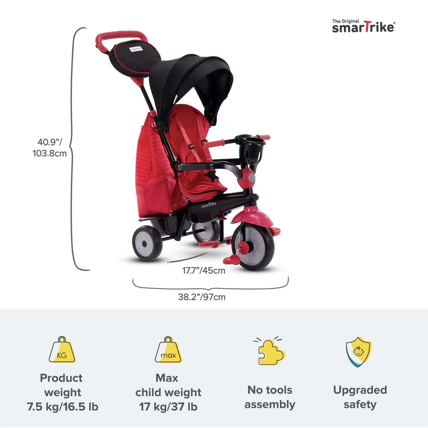 – Enjoy the 4 adjustable tricycle configurations that suit every stage in your child s life