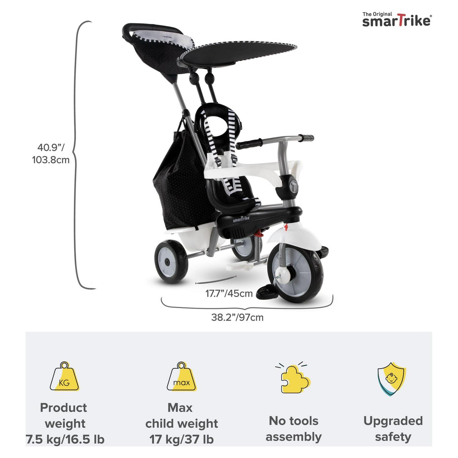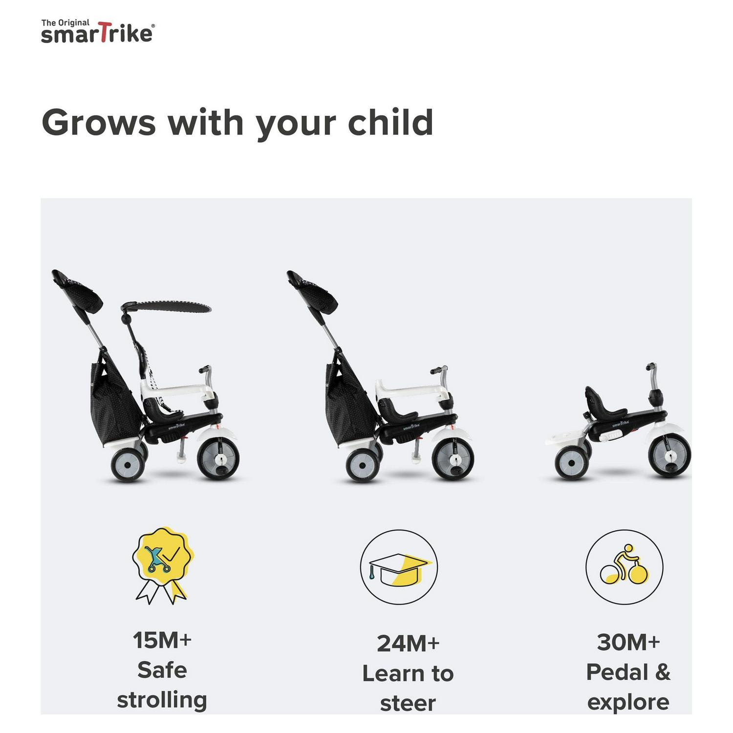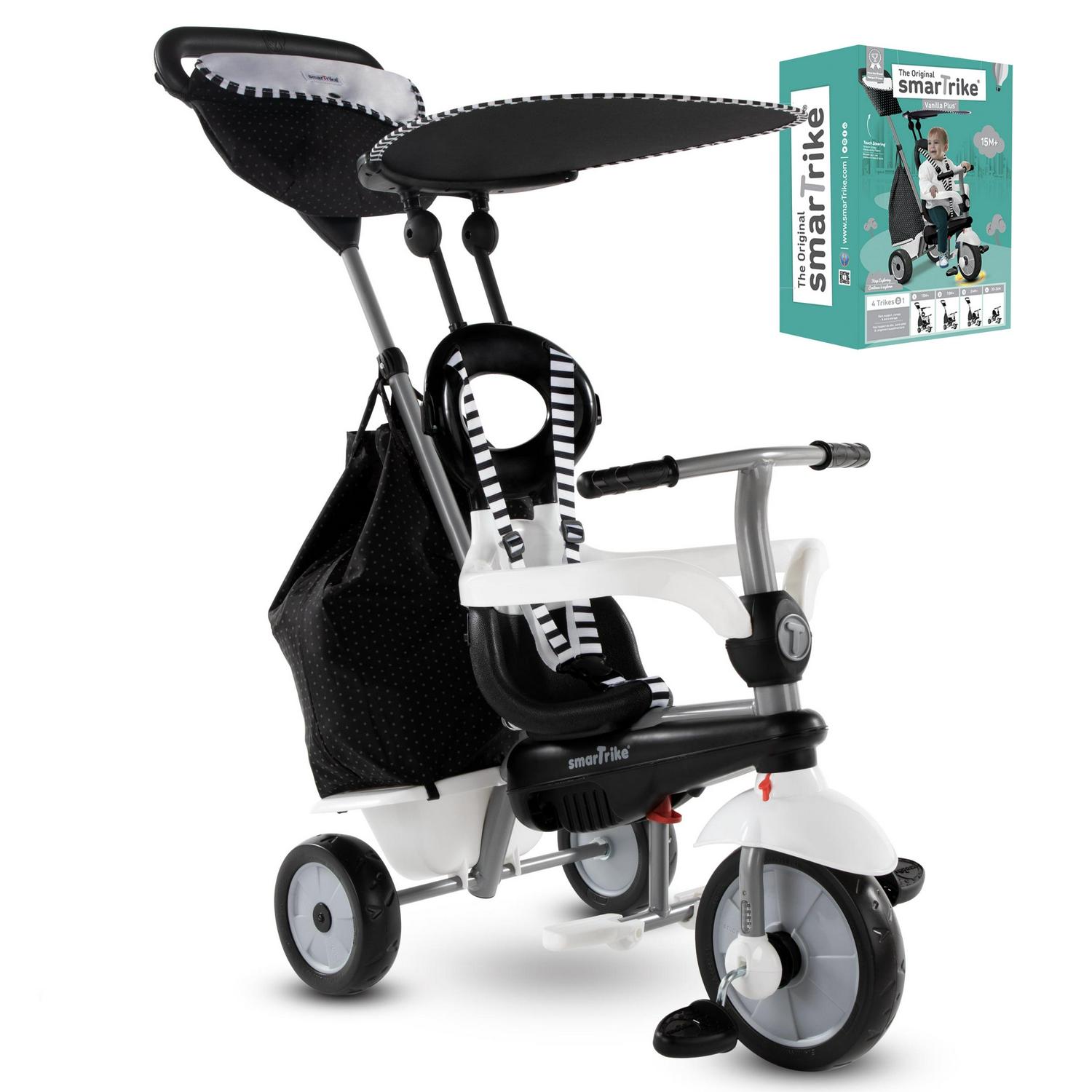 smarTrike Vanilla Plus, 4-in-1 Toddler Tricycle, 15M+, Black and White