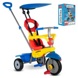 The smarTrike Zoom is the perfect solution for parents who want their little one to have a smooth, comfortable ride. This 4-in-1 trike grows with your baby from 15 months old and up, so you’ll be able to use it for many years to come. The Touch Steering makes it easy to control, just touch the parent handle and the trike will move in the direction you want. The dual control mode lets you decide who’s in charge; you or your little adventurer. And there’s no need to worry about safety with a 3-point Y harness, removable safety bar, non-slip pedals, and a sunshade canopy. The durable EVA wheels and patented shock absorbers provide a seamless ride, while the chic design adds style to your day outdoors. This smarTrike Zoom Tricycle is a great way to spend time together, so go ahead and get ready for some fun family adventures!
