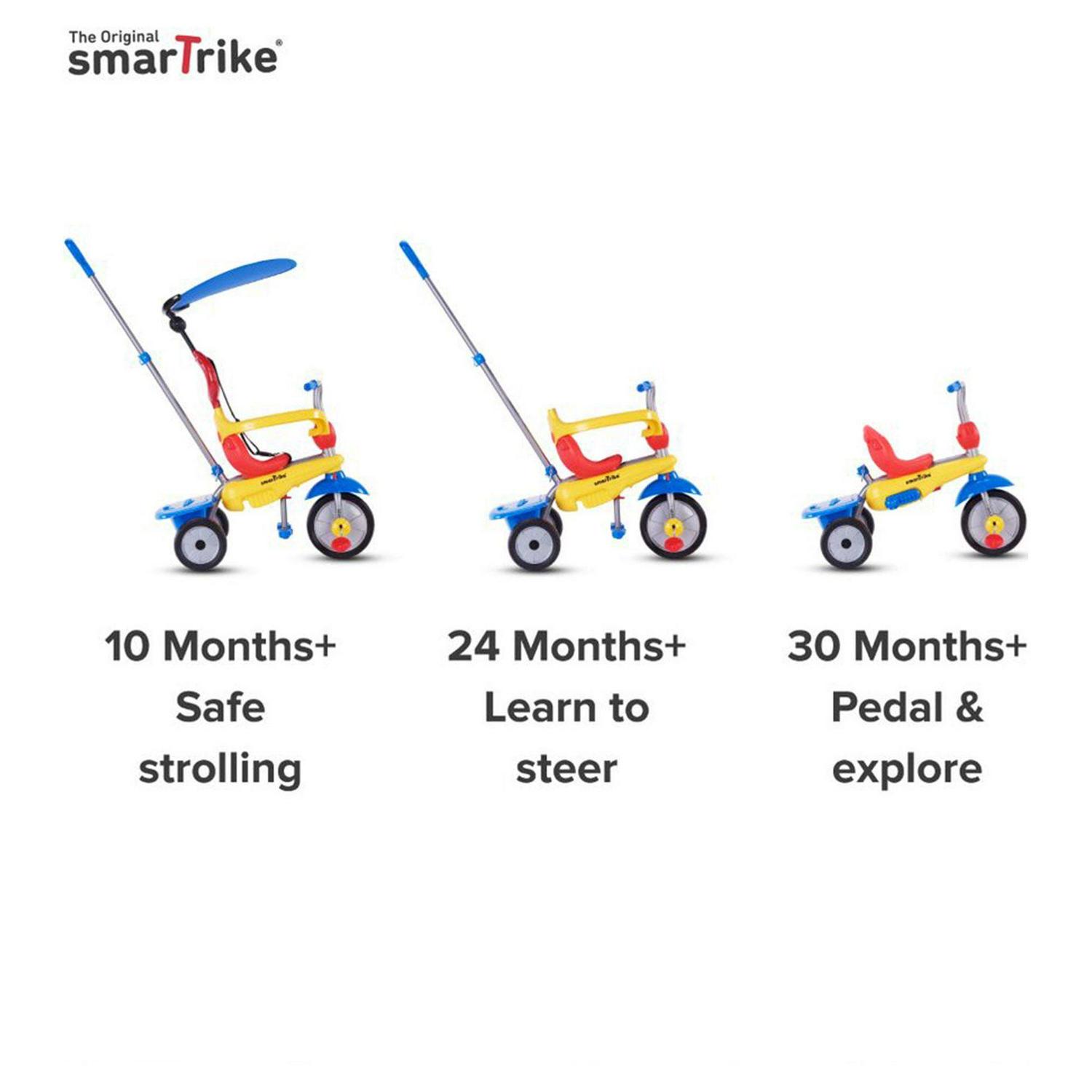 smarTrike Zoom 4 in 1 Baby Toddler Trike Tricycle Toy for 15-36 Mo, Multicolor