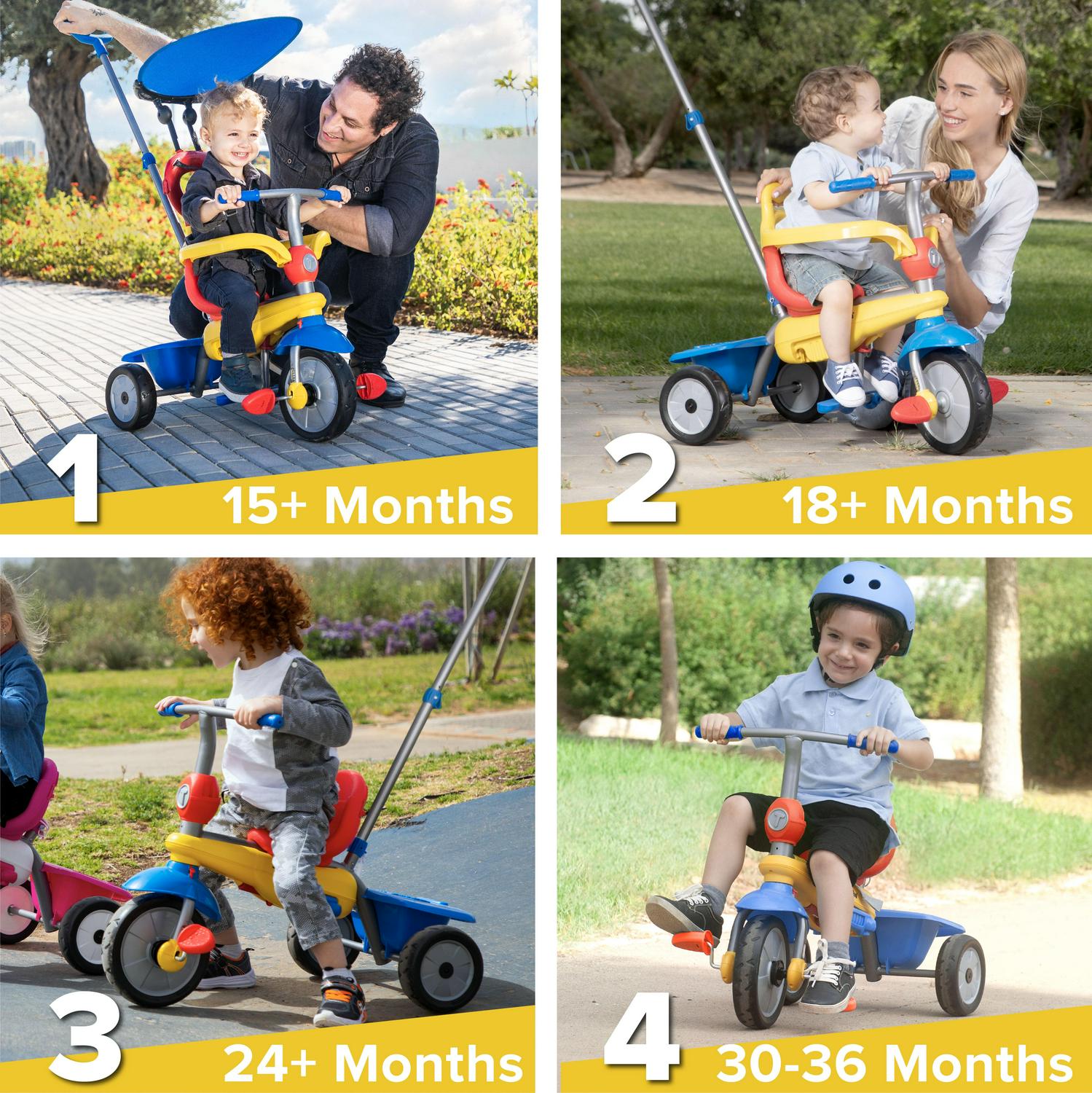 – Going from a push tricycle for infants to a full toddler trike suitable for 15 months to 3 years old; Designed to help your baby develop motor skills, confidence, and balance as they learn to ride independently