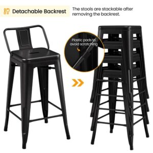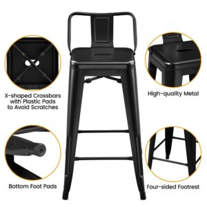 SMILE MART 26 Metal Counter Bar Stools with Low Back for Home Bar, 4pcs, Black