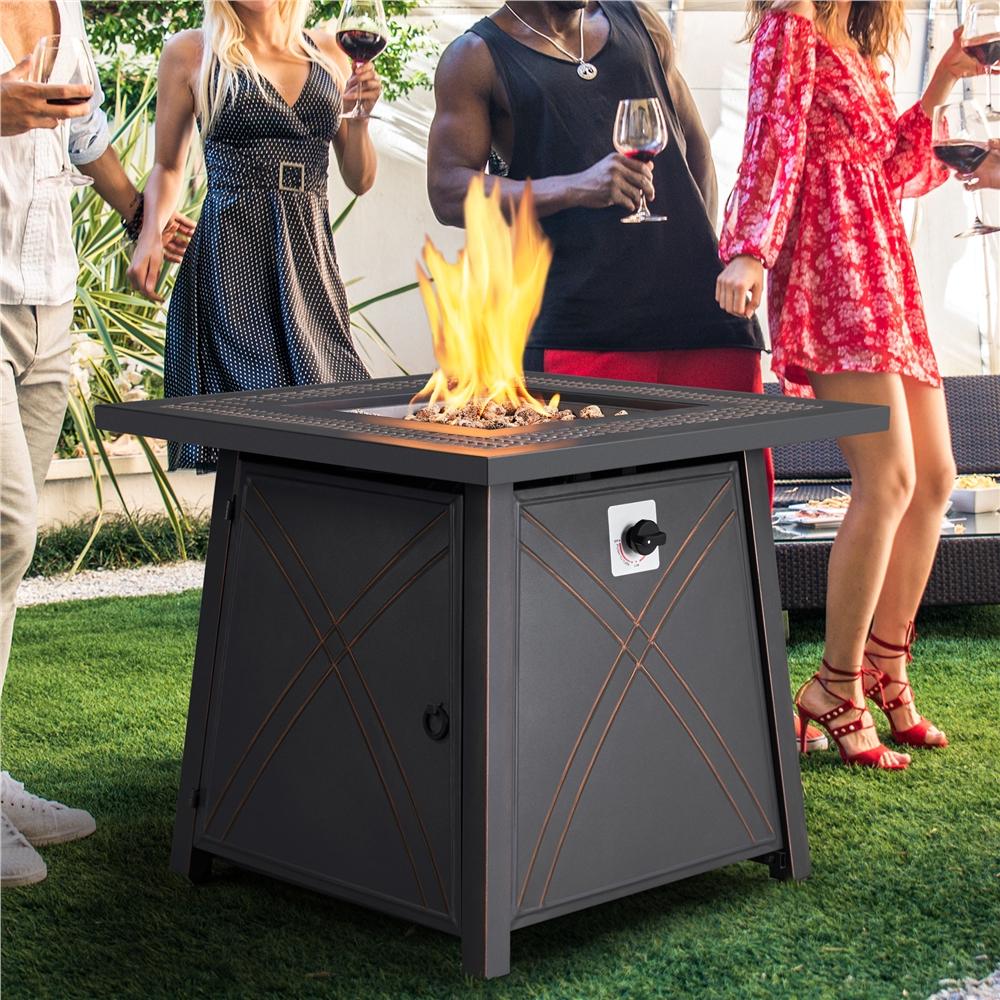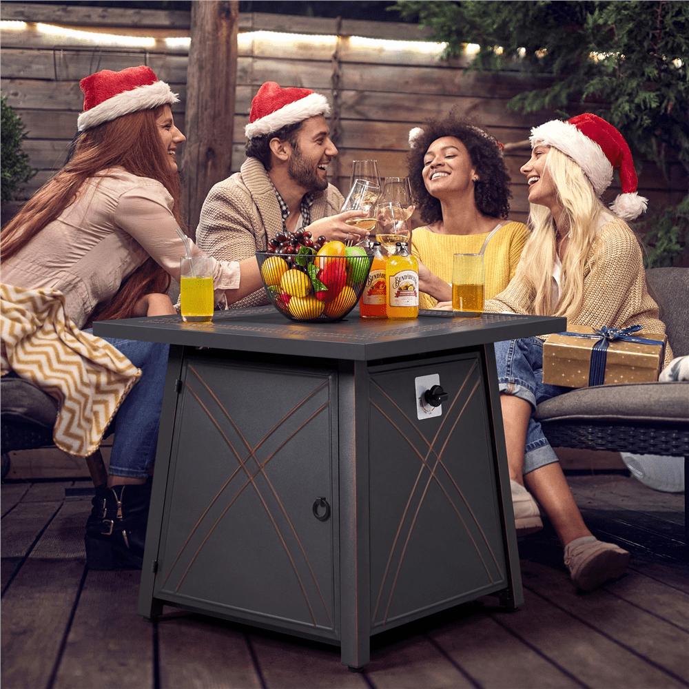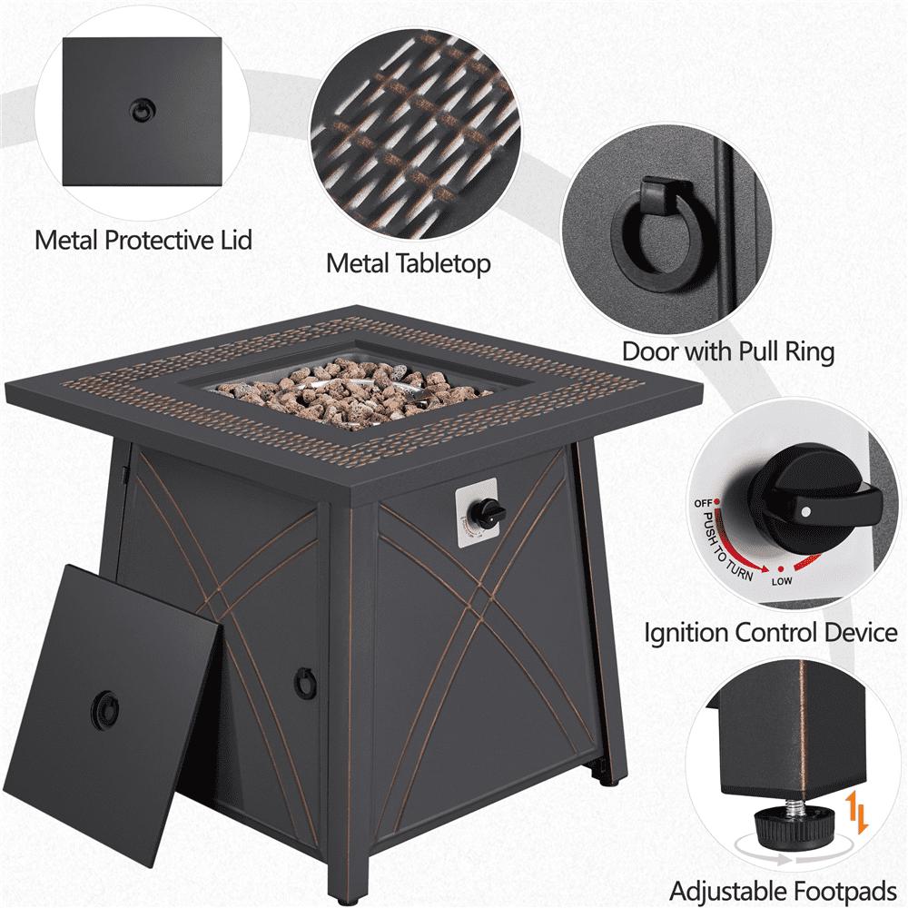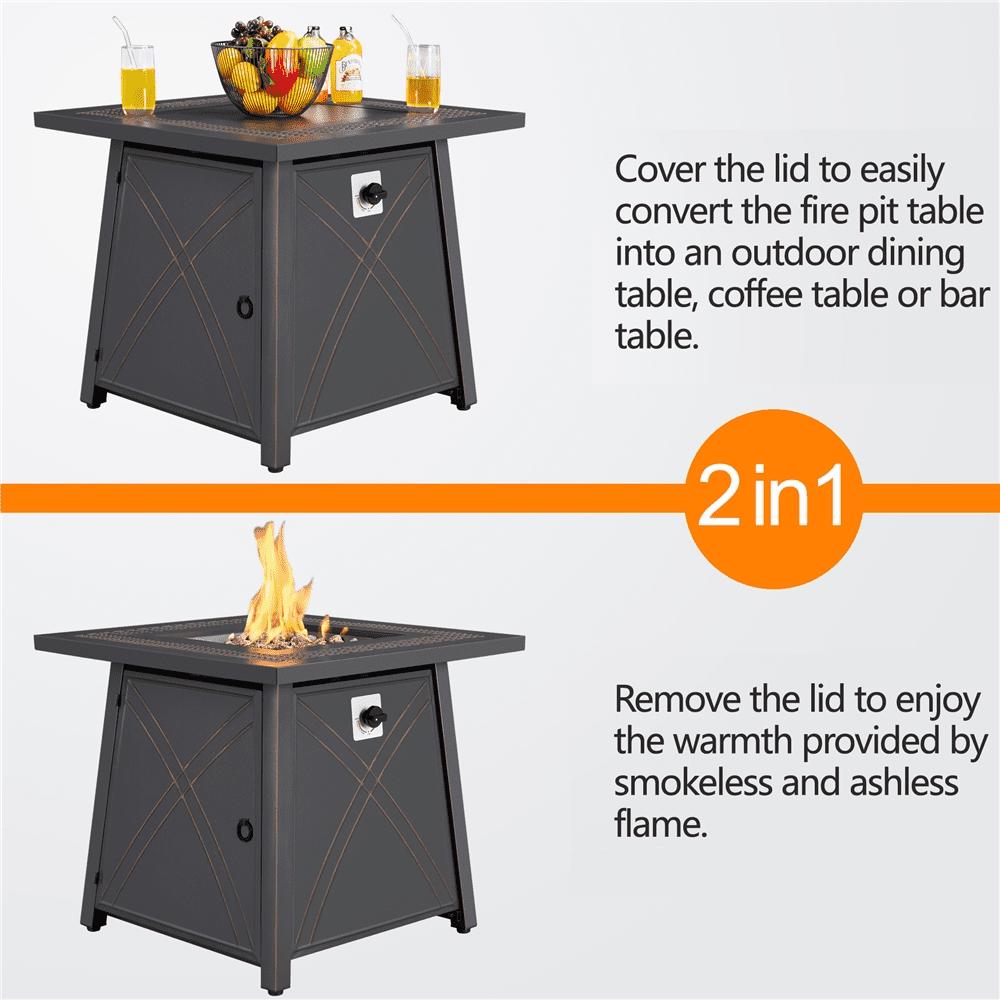 SmileMart 28″ Square Propane Fire Pit Table with Lid and Iron Tabletop for Outdoor, Copper