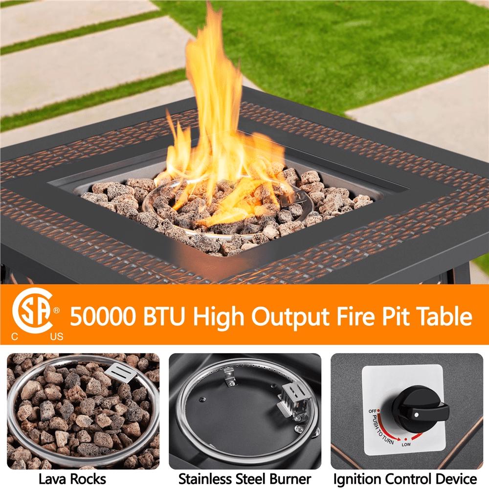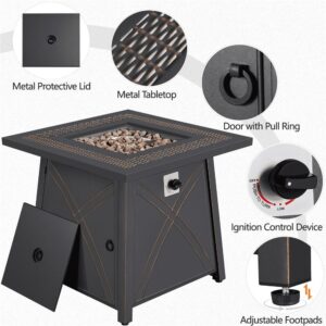 SMILE MART 28 Square Propane Fire Pit Table with Lid and Iron Tabletop for Outdoor, Copper