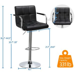SmileMart 2pcs Adjustable Swivel Bar Stools PU Leather Counter Stools,Black: