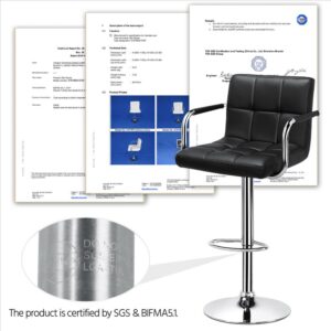 – HEAVY-DUTY:With 7.5cm/ 3″ thick foam filling and special-treated metal surface, this adjustable bar chair is made of premium foam, chromium-plated steel and PU leather, which is rustproof, waterproof and sturdy enough. Bearing: 150 kg/ 331 lb,