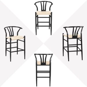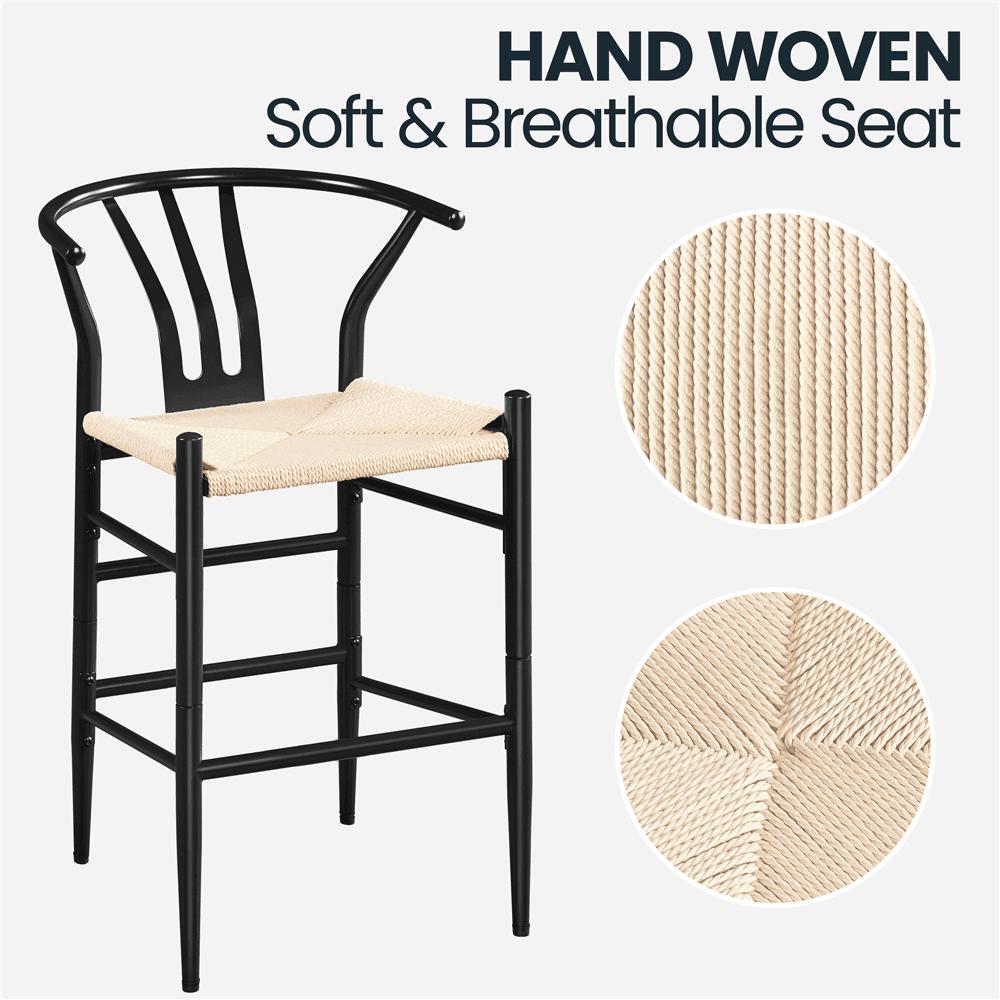 Are you looking for a new set of bar stools for your home bar This set of 2 handwoven bar stools will be an ideal choice. Our bar stools are very suitable and all-match for the home bar, kitchen counter, or restaurant. Made of sturdy metal and durable three-ply paper rope, sure to last for many years of daily use. The contoured slatted backrest makes the stools attractive and unique, improving the backrest’s stability. The illustrated instructions will guide you through the installation. Comfortable and classic, this 26 H bar stool set will serve you good times from breakfast to midnight drinks!