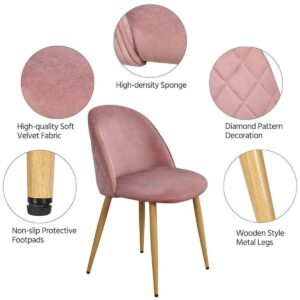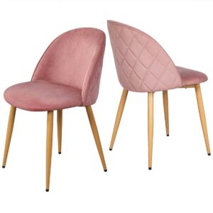 SMILE MART 2pcs Mid Century Upholstered Velvet Dining Chairs, Pink