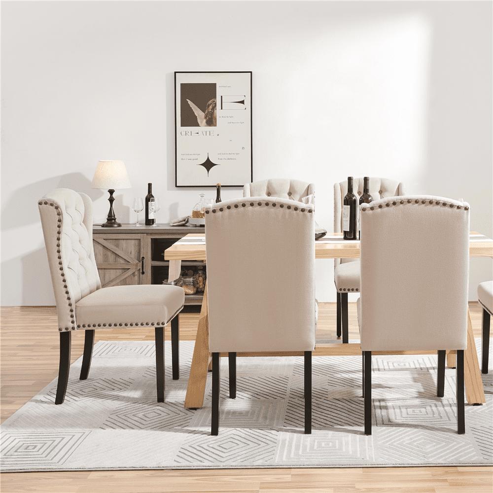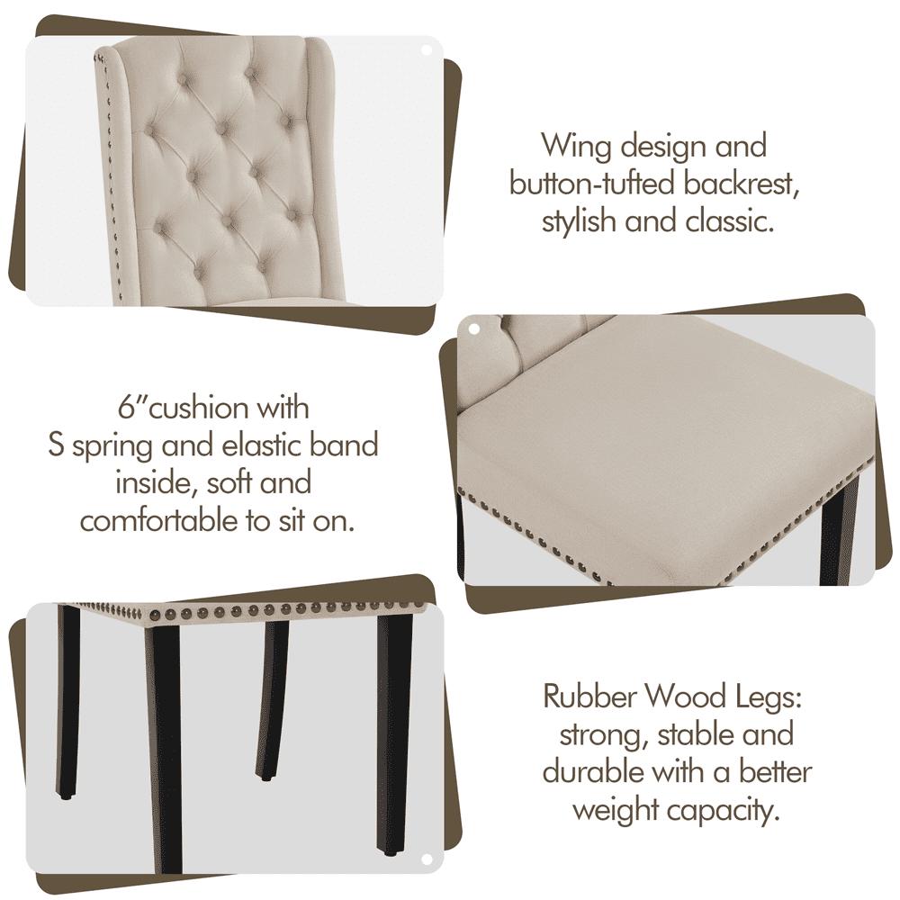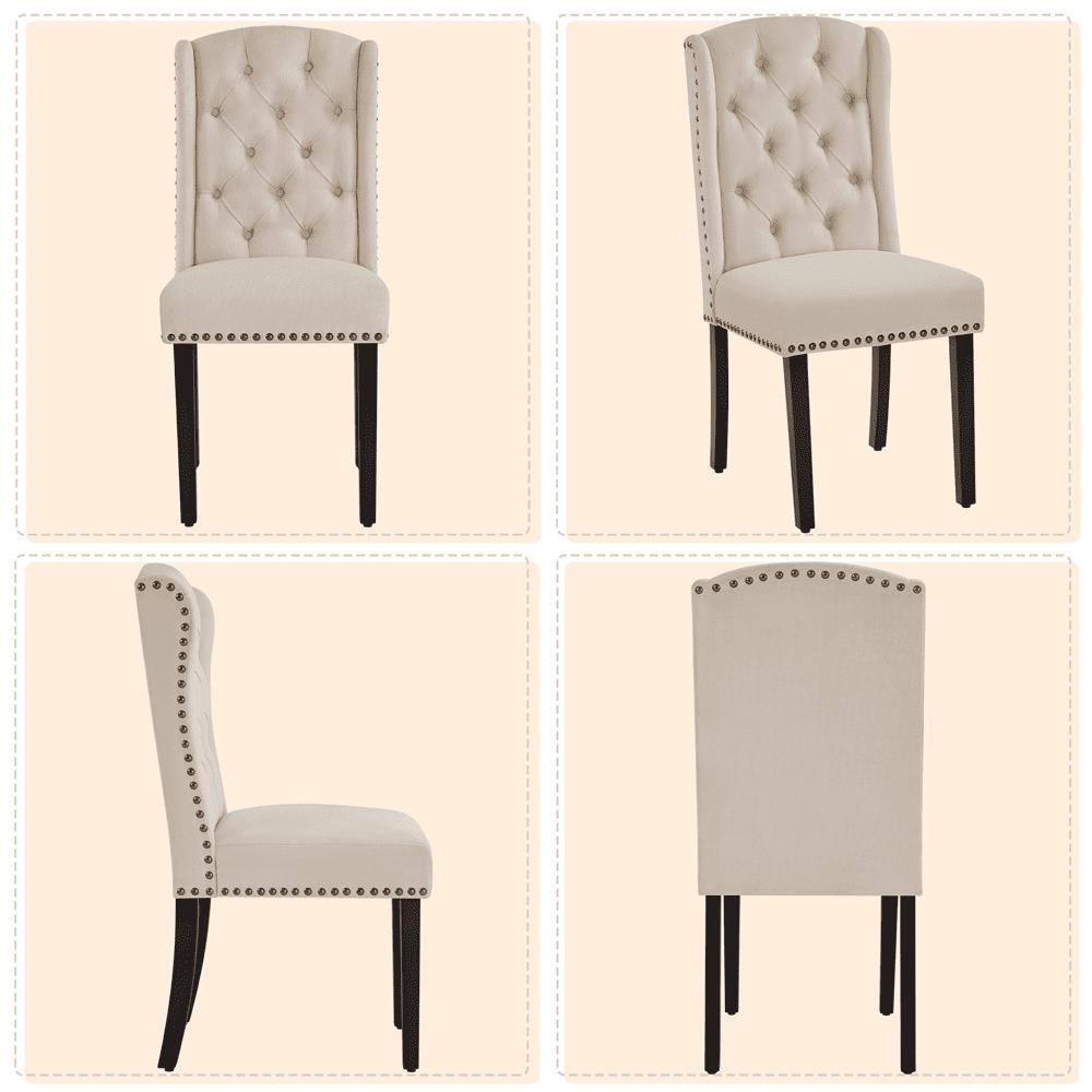 - SMILE MART 2pcs Upholstered Tufted Dining Chairs with Wing Design for Kitchen, Beige