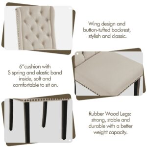 SMILE MART 2pcs Upholstered Tufted Dining Chairs with Wing Design for Kitchen, Beige