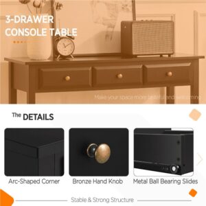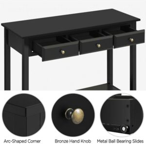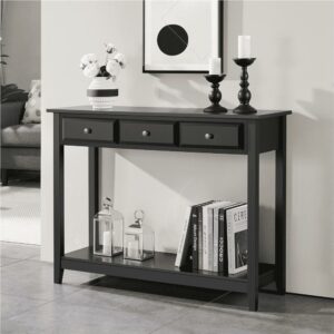 SMILE MART 3-Drawer Wooden Console Table with Storage Shelf for Entryway, Black
