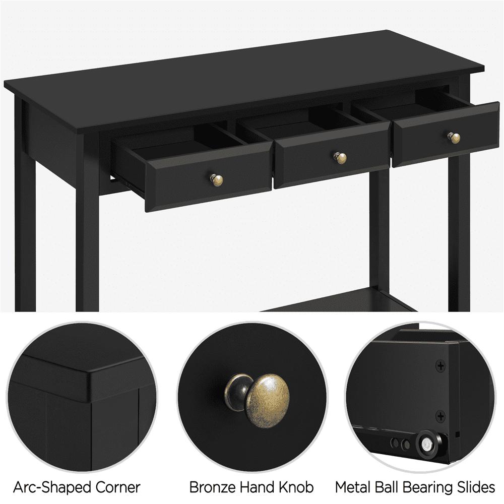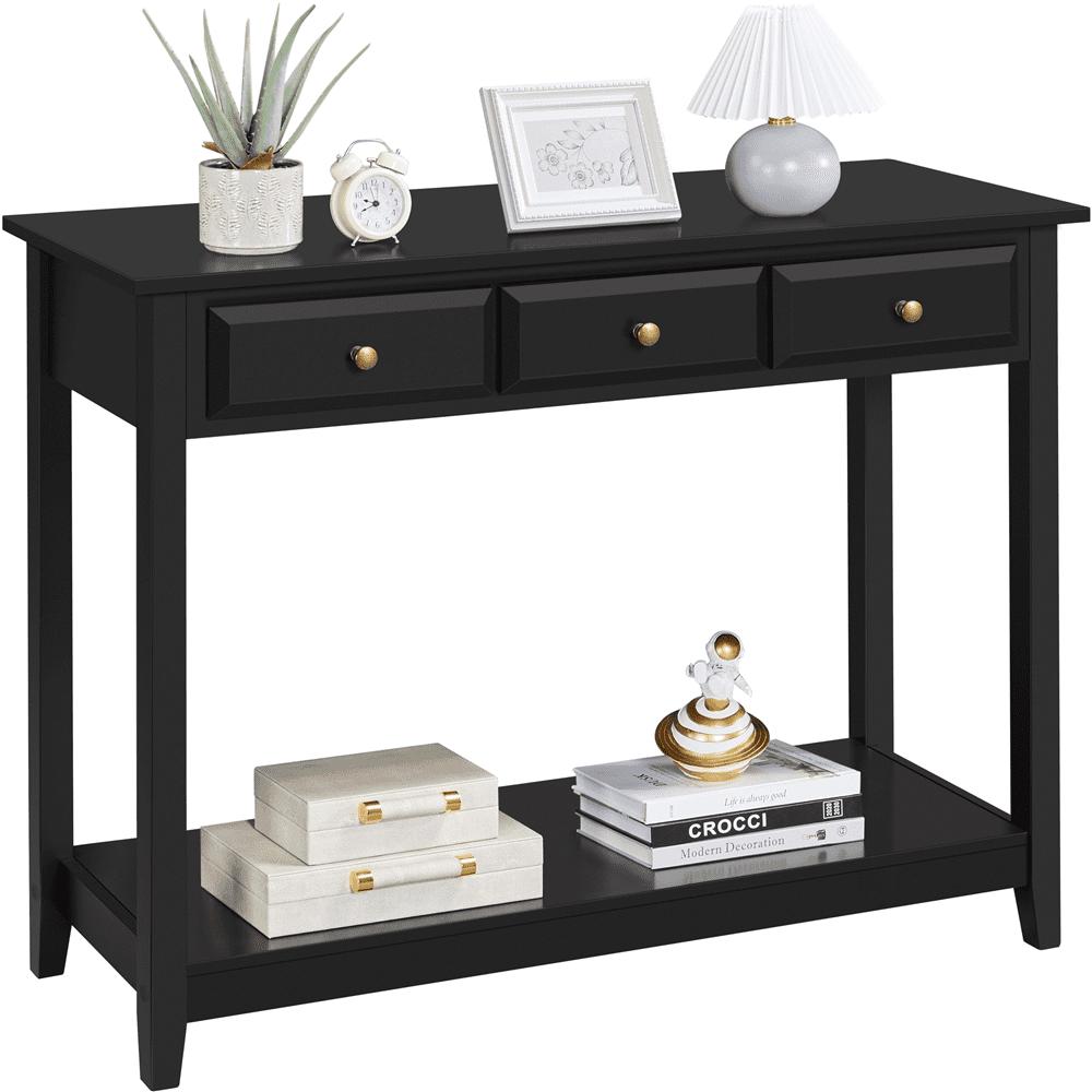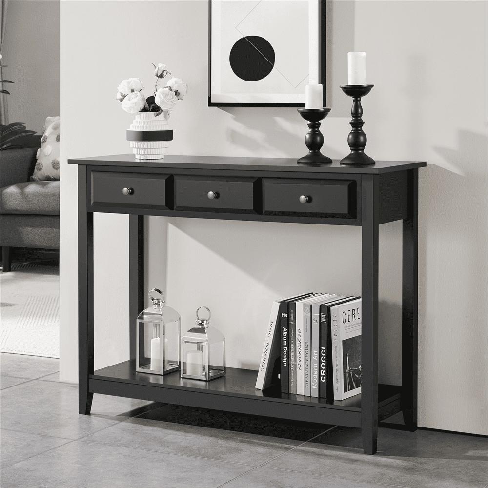 SmileMart 3-Drawer Wooden Console Table with Storage Shelf for Entryway, Black