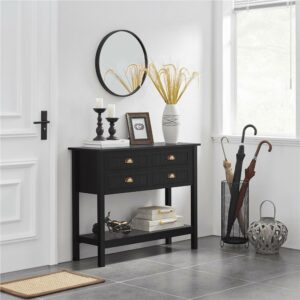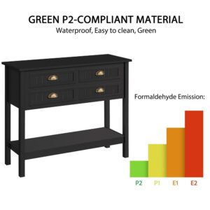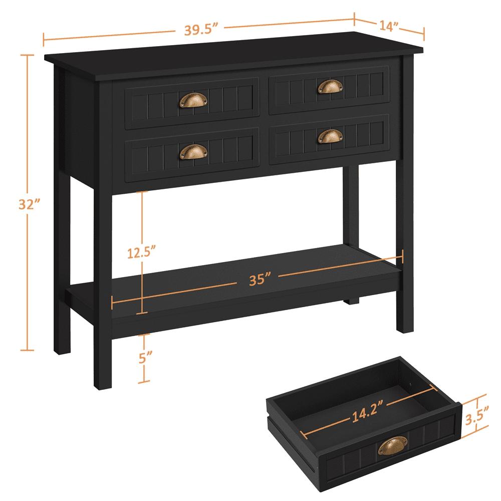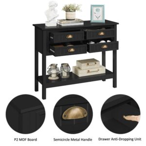 – SMILE MART 4-Drawer Wooden Console Table with an Open Shelf for Entryway, Black