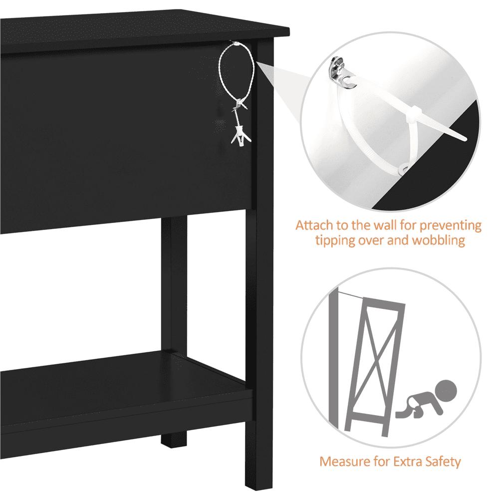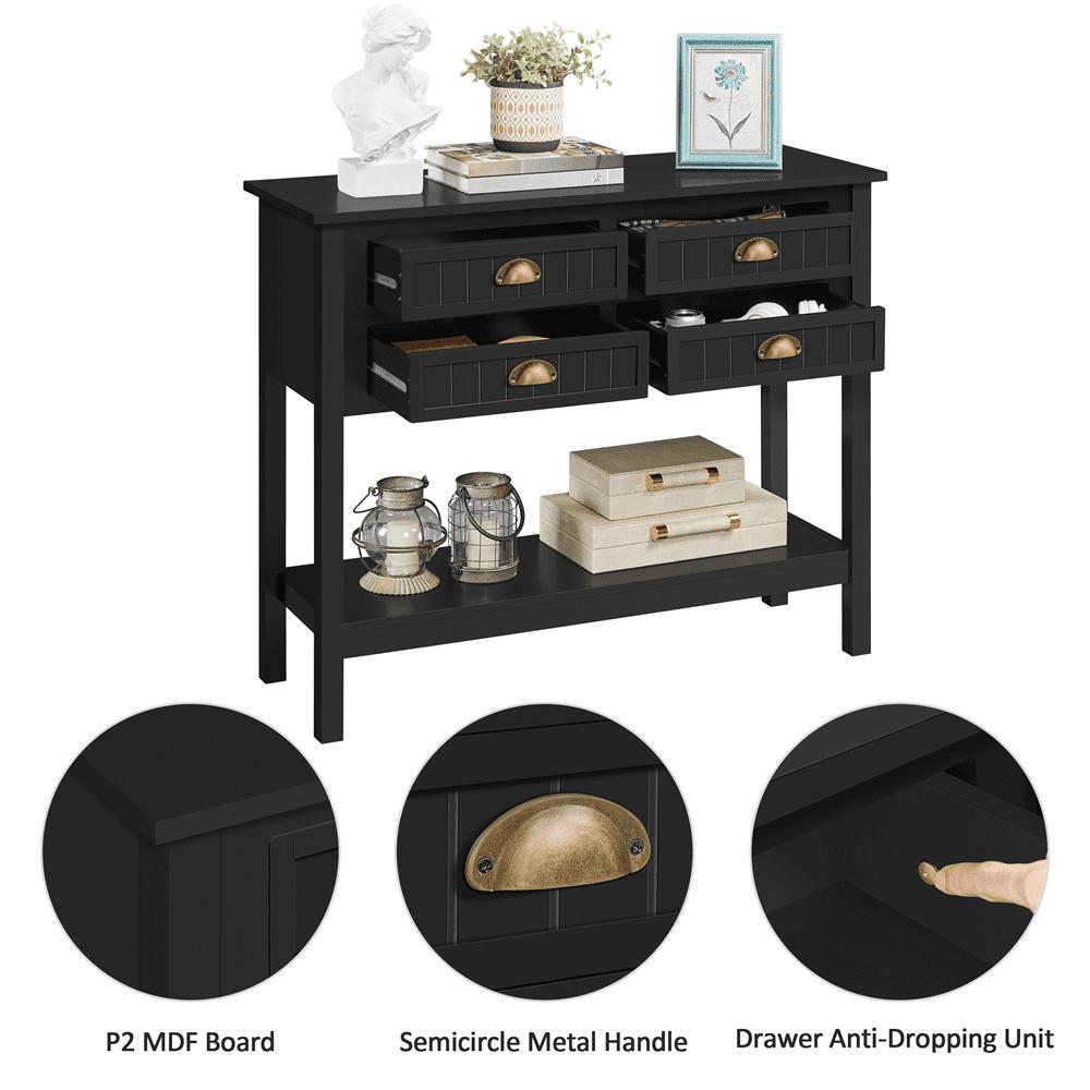 - SMILE MART 4-Drawer Wooden Console Table with an Open Shelf for Entryway, Black