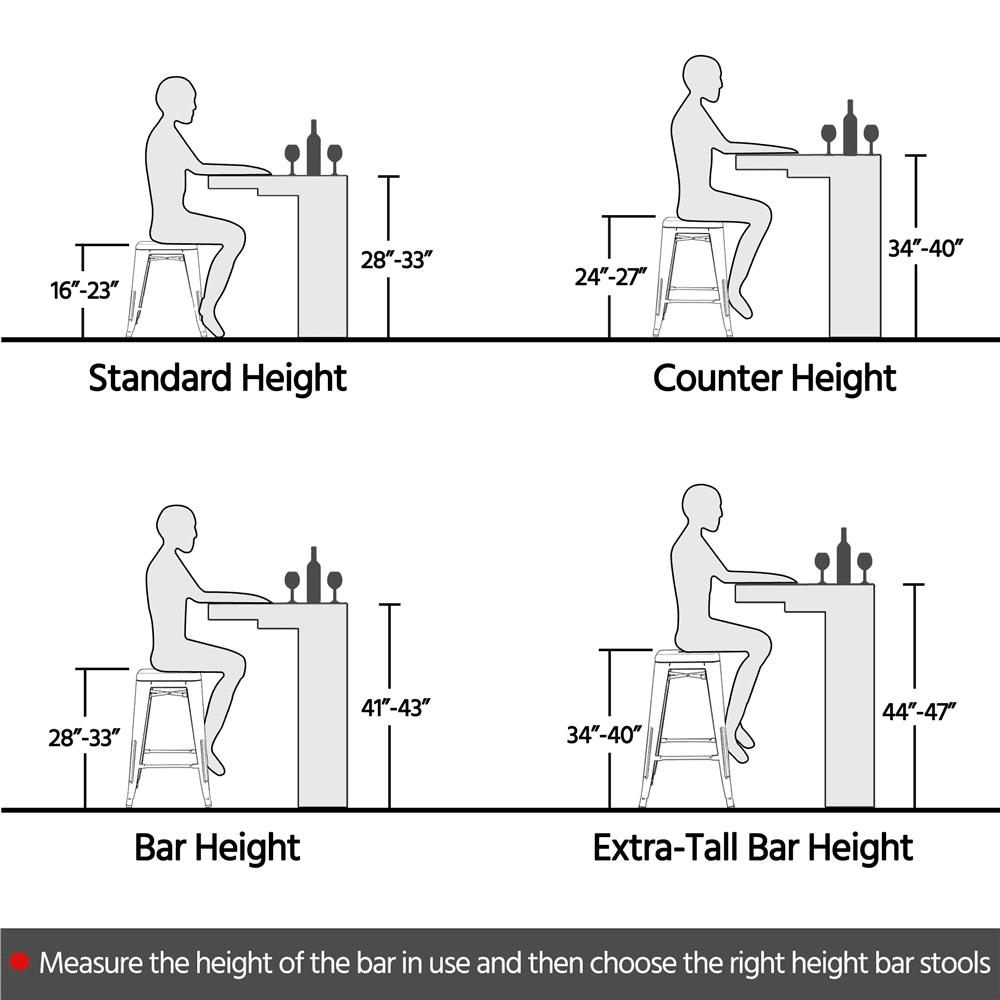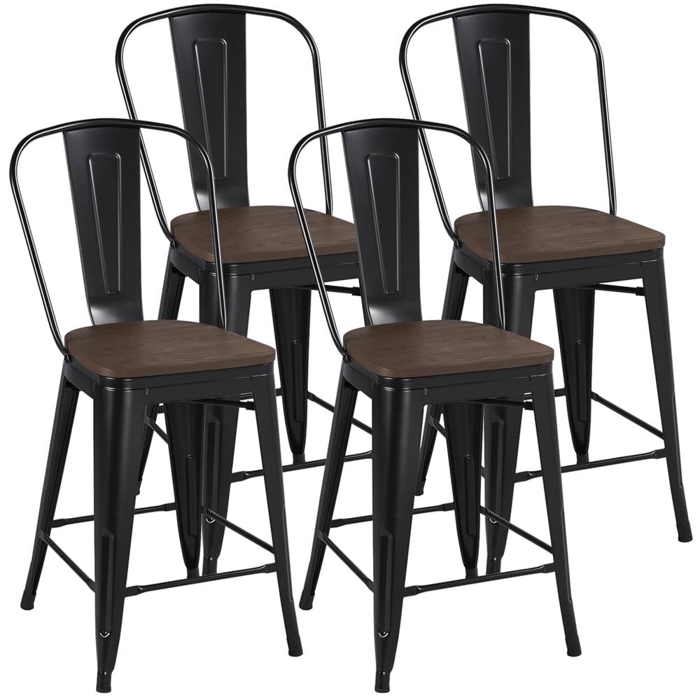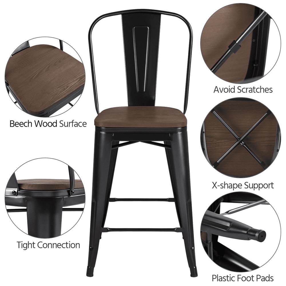 Worry that the furnbar stool will solve the problem. Are you looking for chairs that are comfortable, practical and fashionable Choose this set of industrial metal bar stool with backrest/footrest! They are made of metal and solid wood. Bar stools in the absence of backrest are stackable to save space and easy to transport. It is also convenient to assemble and disassemble stools under the illustrated instructions. The seat has cross supports at the bottom, which greatly increases the stability. There are plastic protective footpads at the end of the legs, which keep floor/ground from damage and scratches. Also, these scratch-proof pads can reduce noises when you move the chairs and increase stability when you sit on them. They are sold in 4 pieces together, suitable for bistros, patios, cafés, shopping malls, dining rooms, and kitchens, etc. Do not miss out!