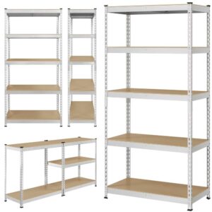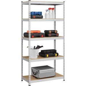 – SMILE MART 5 Tiers Adjustable Metal Boltless Shelf for Garage/Warehouse/Living Room/Kitchen, Silver :