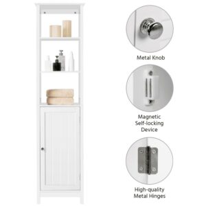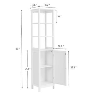 SMILE MART 63 Wooden Tower Floor Cabinet with 3 Open Shelves, White