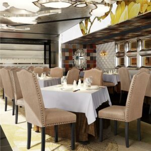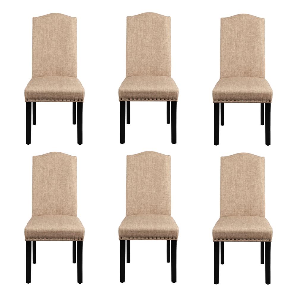 – SmileMart 6pcs Fabric Upholstered Padded Parson Dining Chairs with Nailhead Trim Solid Wood Legs, Khaki: